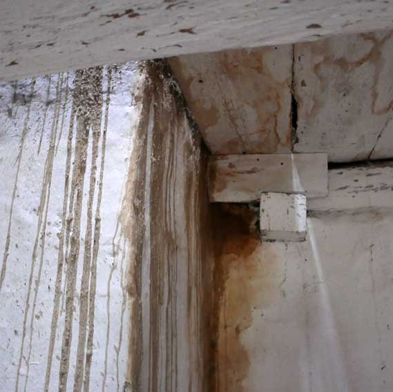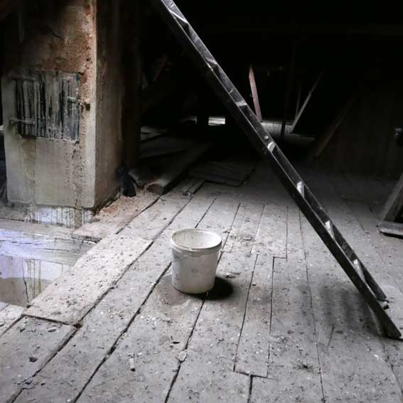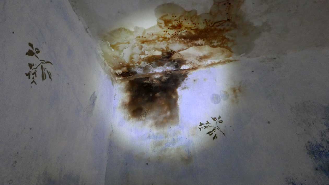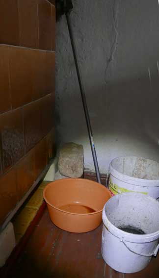 Unten plötzlich Wasser mitten im Zimmer. Von oben - der feinen Riss.