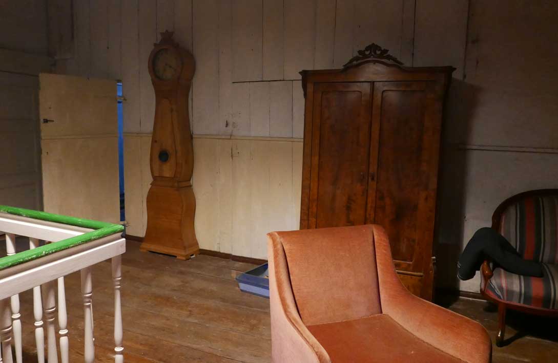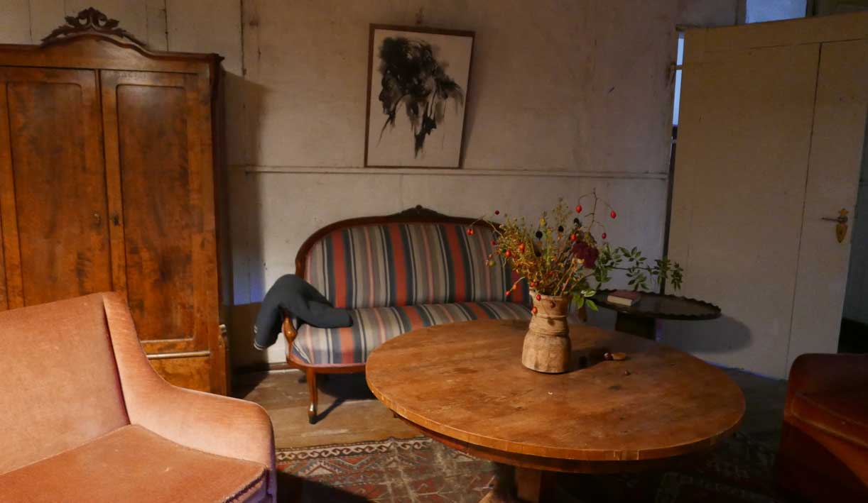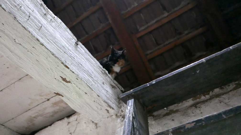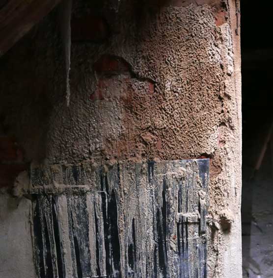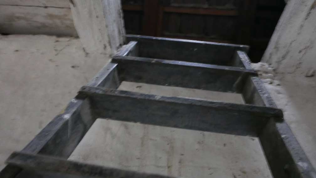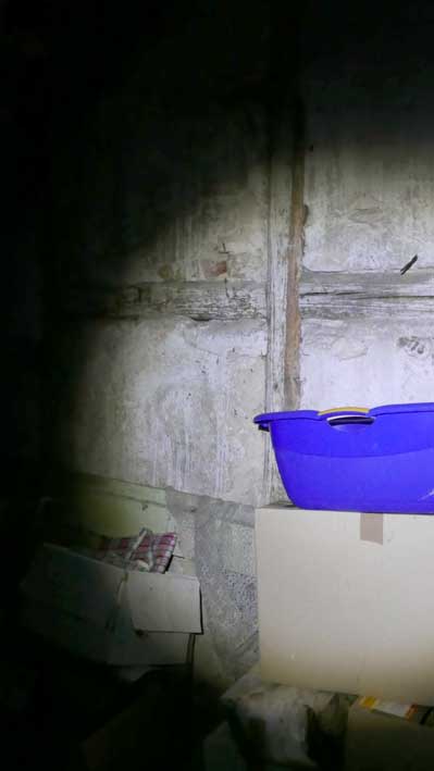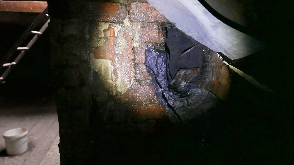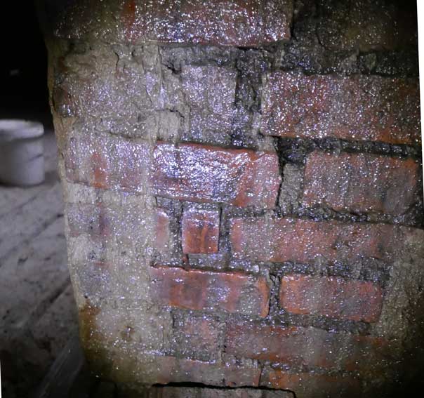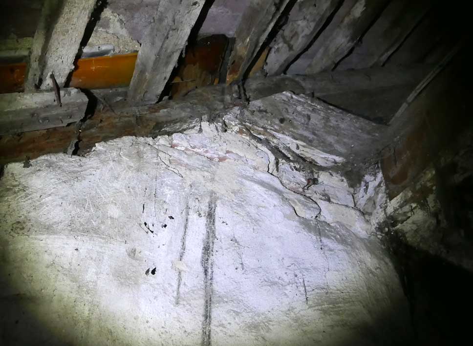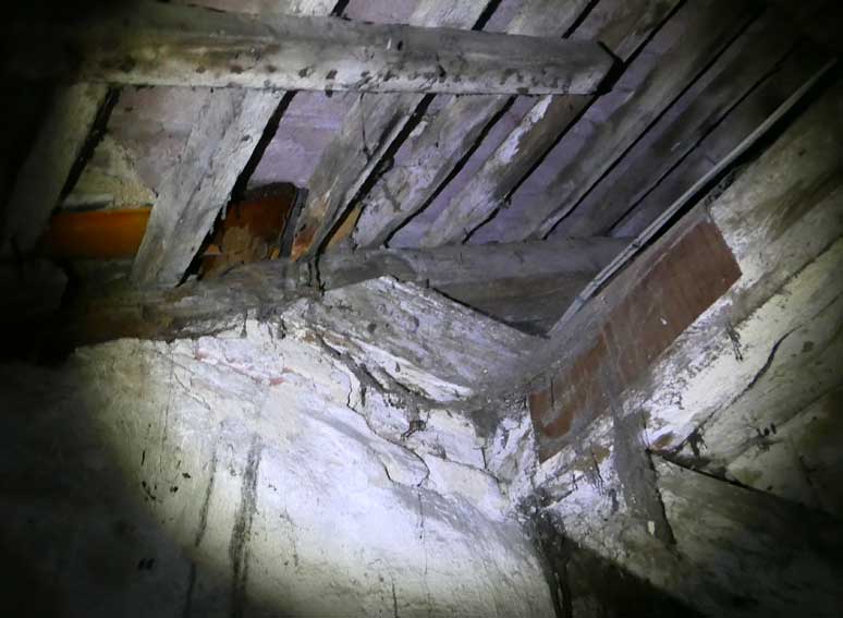 Oben dann in der Kammer neben dem Giebel, wo die Wand durch das Dach will, war der Ziegel zerrissen. Von unten nicht zu ersetzten. Und nun tropfte es durch Fussboden und Decke bis unten.