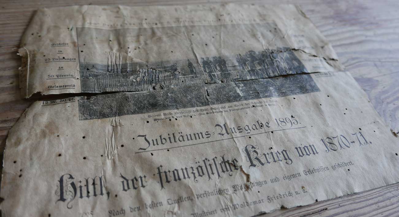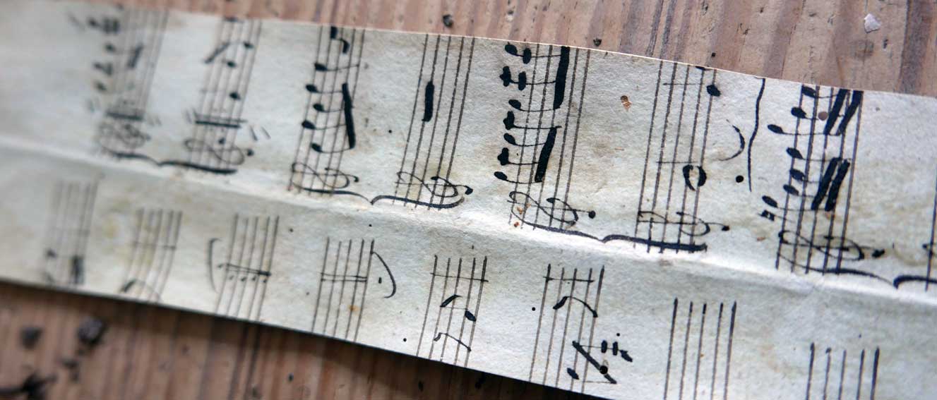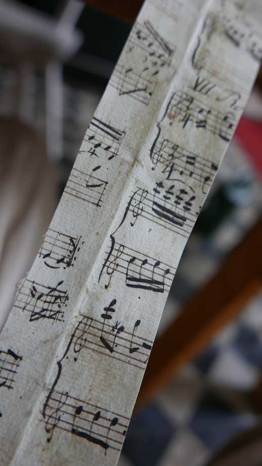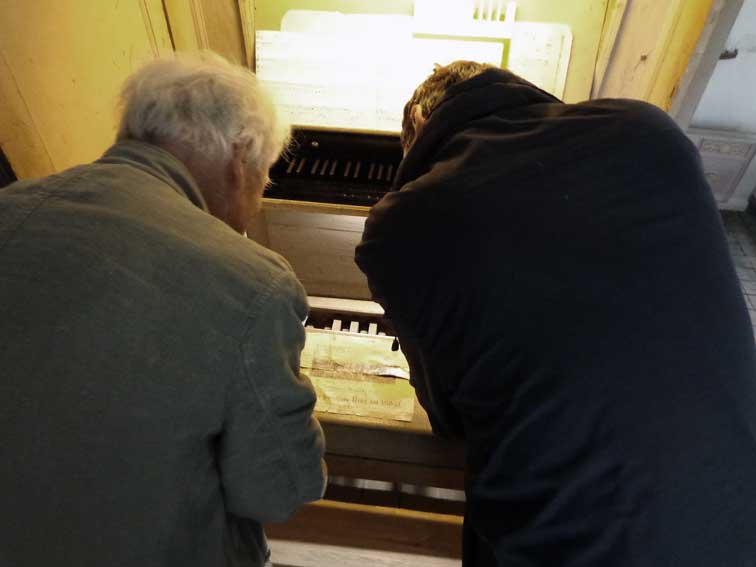 Fundstücke aus der Installierung der Orgel damals als die Treppe hinauf entstand. Worin alte Orgelteile aus Holz später verarbeitet wurden.