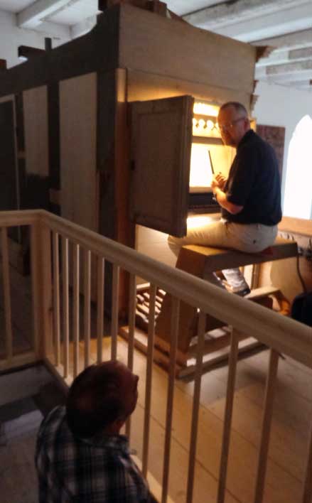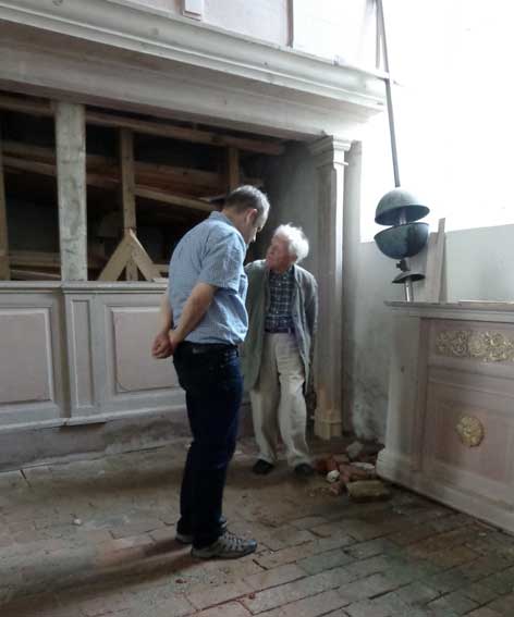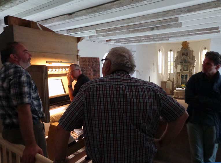 lange Diskussionen auch über die Seiten und den Unterbau nun des Orgelprospekts mit neuem Korpus in der Mitte.