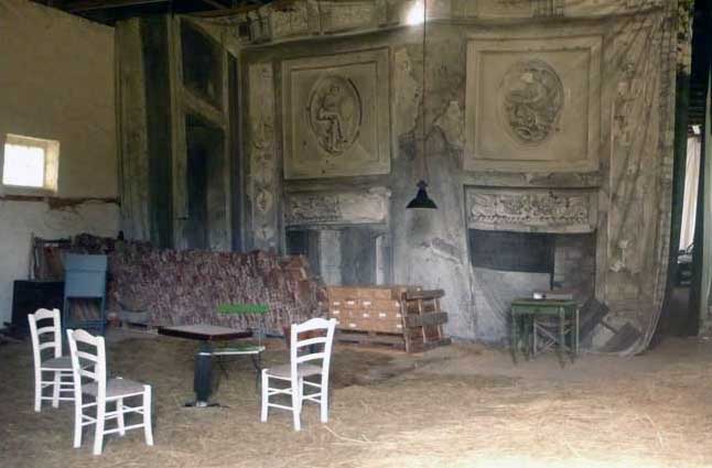 Friedersdorf 45 abgebrannt und abgerissen. Die Ruine Berlins ind das Schloss an der Oder für Kleists Marquise von O... als Hintergrund in N. als Halle der ehem. LPG nach der Scheune des Guts