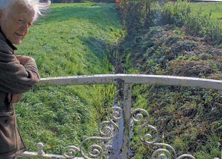 Links als "wichtigste Lebensader des Dorfs", verdreckt und verödet.