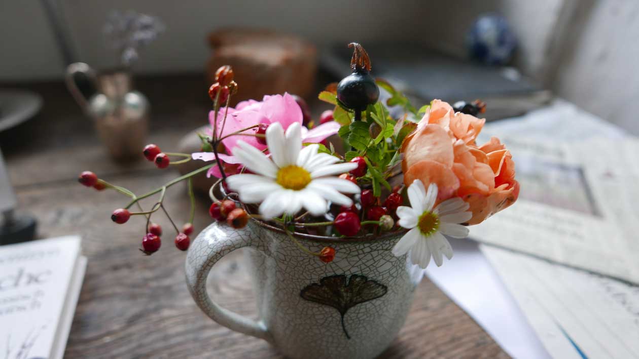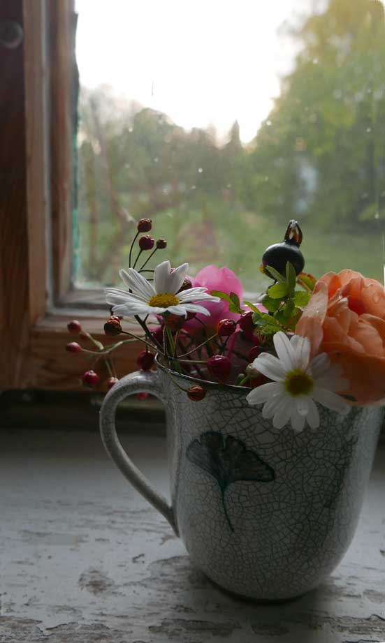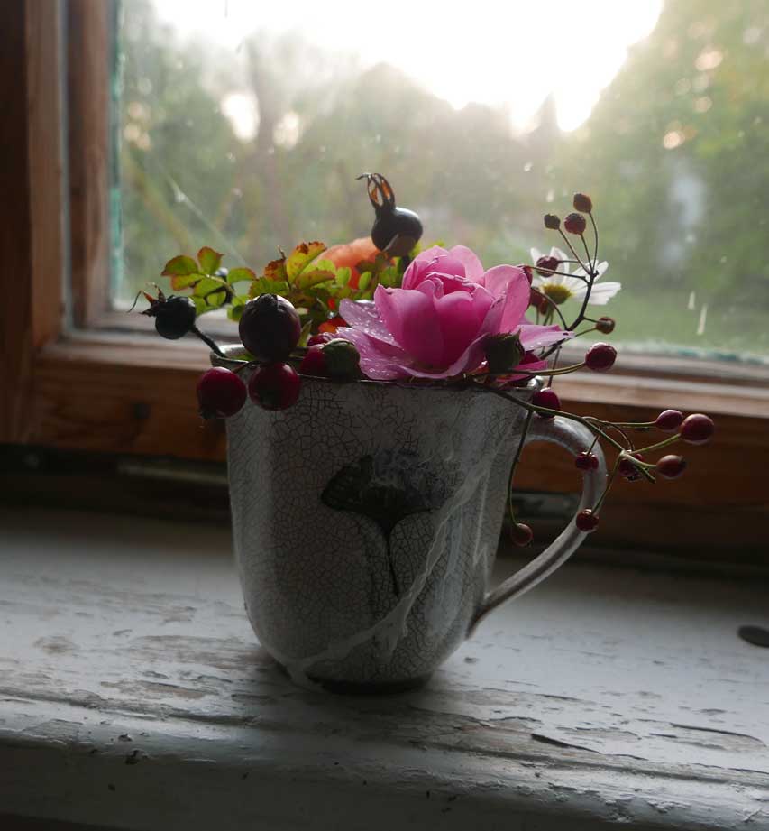 auf dem Fensterbrett wie vorgefunden vor 20 Jahren. Vor dem Turm nun wieder da. Und Erntedank in einer Woche mit einer Orgel wieder auch das.