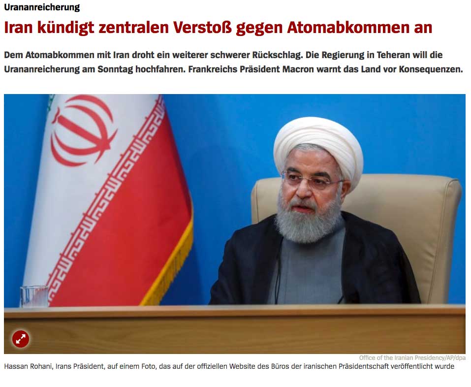 Die USA hatten die FŸhrung in Teheran jŸngst eindringlich vor der angedrohten Urananreicherung gewarnt. "Sie wissen, womit sie spielen, und ich denke, sie spielen mit Feuer", sagte US-PrŠsident Trump.