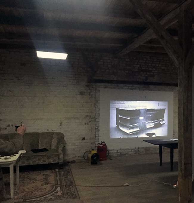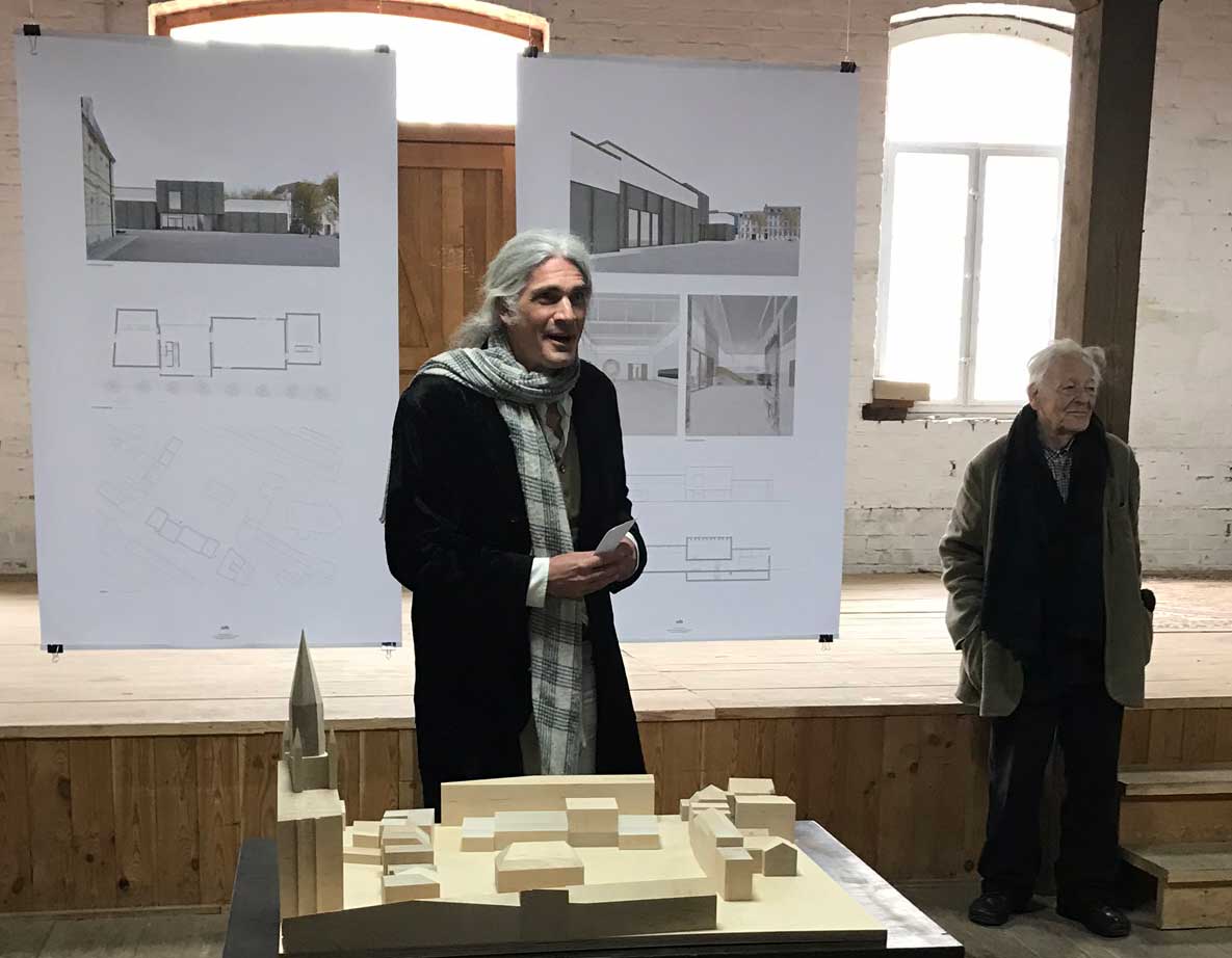 Eugen Blume aus Berlin ehem. Hamburger Bahnhof, Museum der Moderne, Preussischer Kulturbesitz, Dir. aus unserem Verein, der das alles hier aus N. antreibt. Mit seinen schönsten Worten bisher zu dem was hier als Installation der Ideen zum Markt in Demmin entstand.