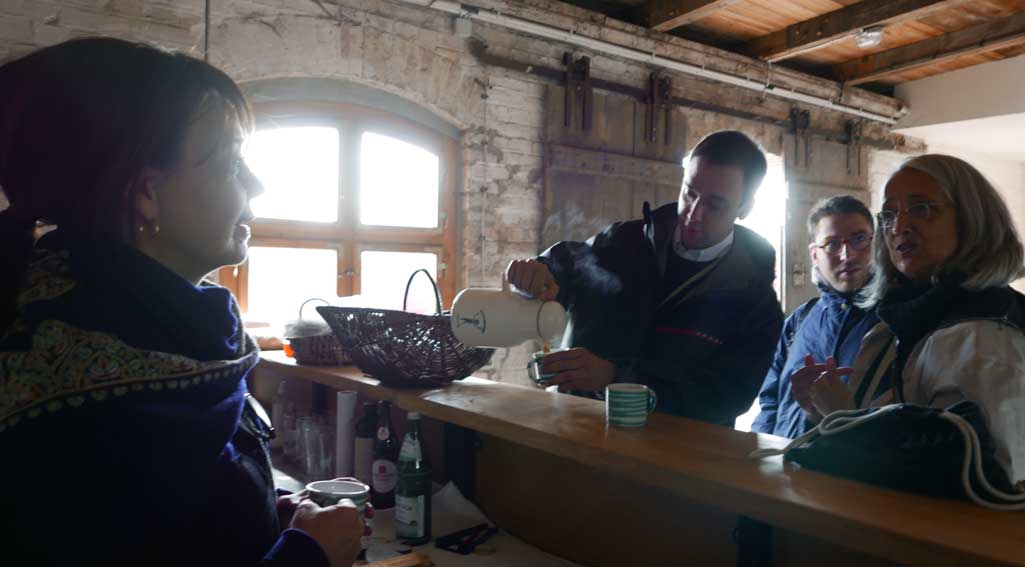 Oben Luigi Cippini aus Mailand der Gast mit beosnderem Auftrag kommt runter
