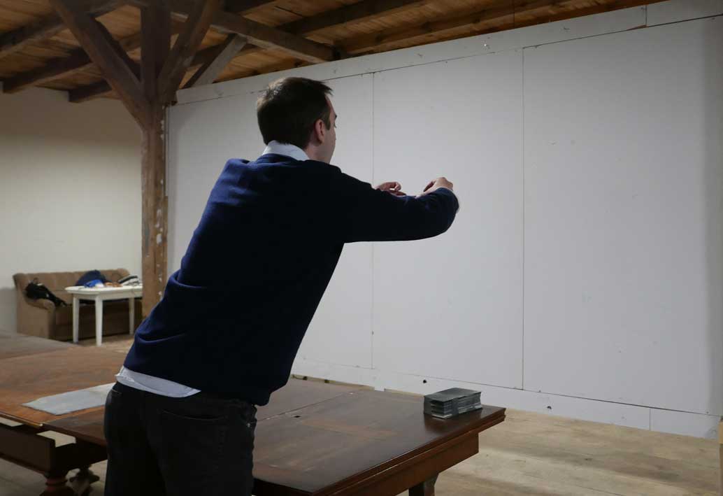 Als die Studenten aus Stuttgart hier wieder ankamen, am Abend, gingen sie nach langer Reise und nach dem Essen bei den 0uzo-Griechen am Markt, auf den nächtlichen Platz am Markt, wofür sie die letzten Wochen und Monate lange gebaut und gezeichnet und begingen alle Grundrisse nach Eingängen und Räumen, jeder für sich, nun in der Realität ab. Einer, der sie beobachtete, sah seltsame Bewgungen auf leerem Platz. Wie die nach dem Untergang der Städte manchmal ihre alten Häuser in Gedanken durchschritten, dann auch in unseren Filmen. Als der Wind durchging. Und sonst nichts.