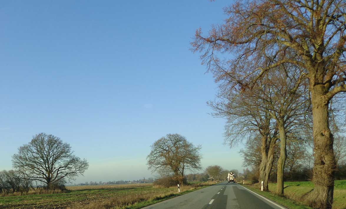 Vor Nossendorf im Dezember auf der Chaussee von Demmin