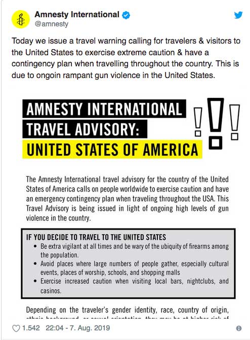 Botschaft an die Trump-Regierung Amnesty warnt Reisende in den USA vor Schusswaffen
