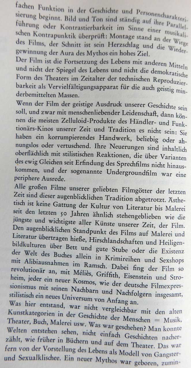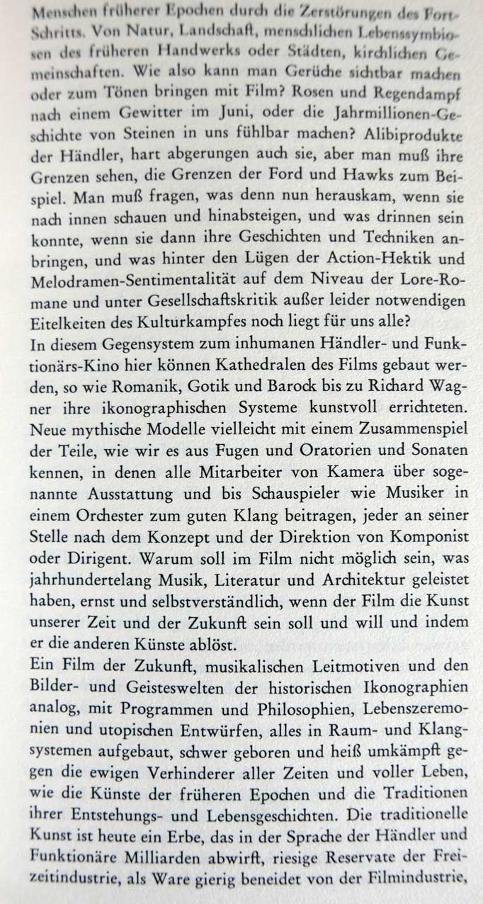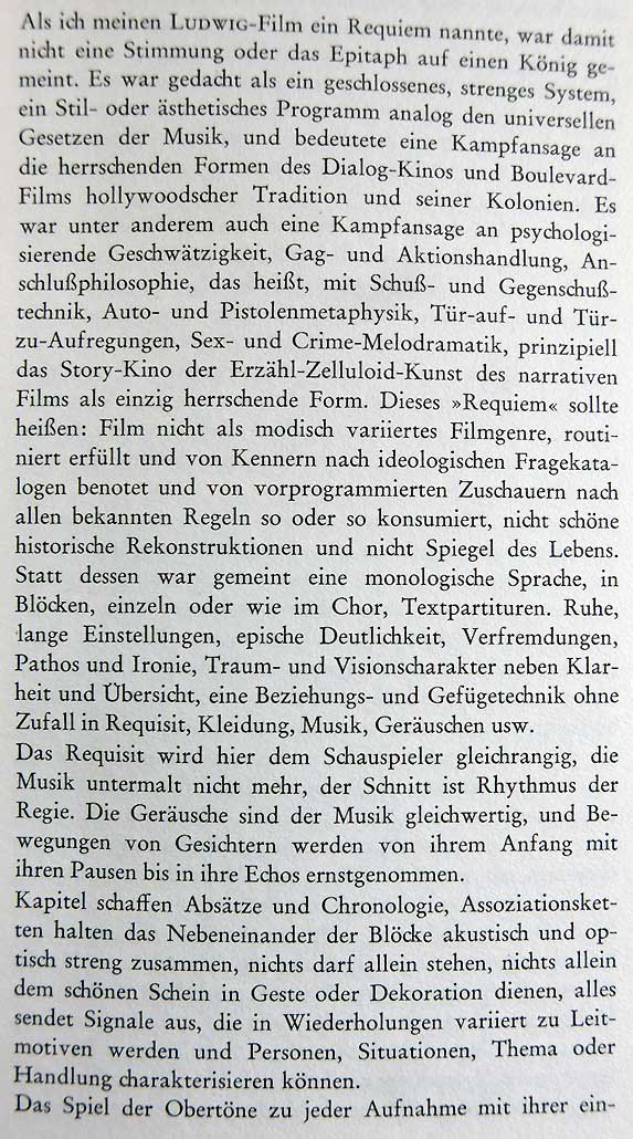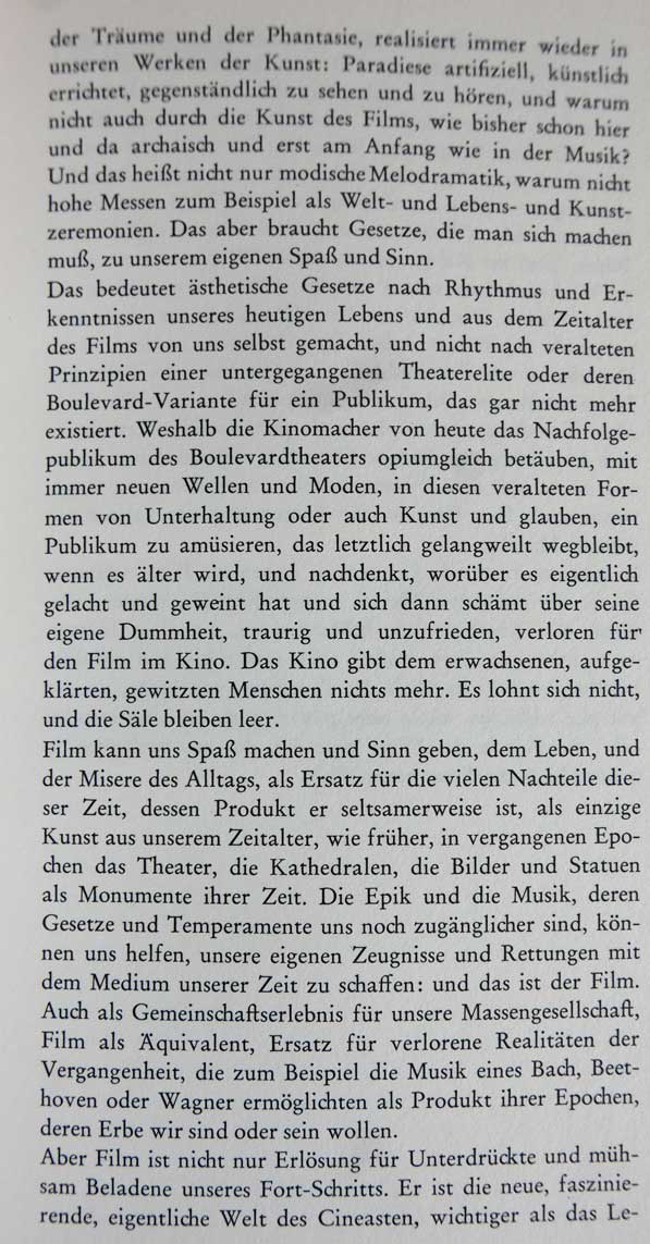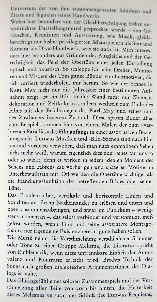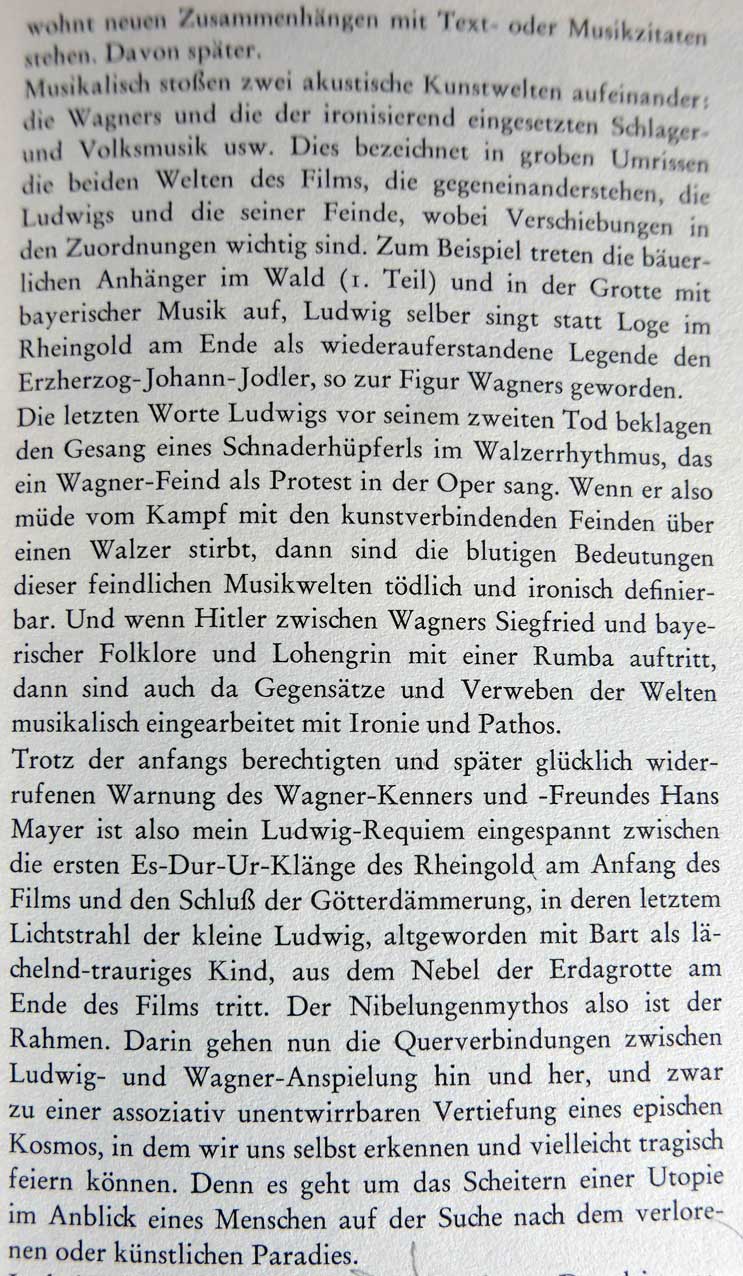 Und nachdem diese bis dahin enstanden Film in 8o Seiten durchdekliniert waren am Ende diese Zusammebfassubg. Denn diese Filme waren anders als andere sonst. Im Kino und Fernsehen damals. Wie gesagt, wie sonst hätten die nächsten Aufgaben eines Hitlerfilms und Wagners Parsifal und die Monolge entstehen können.