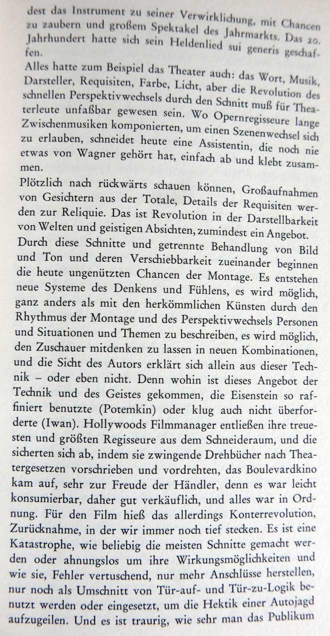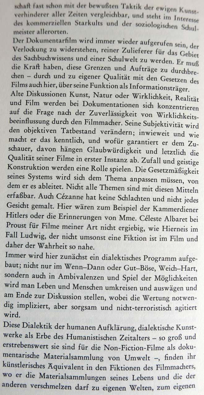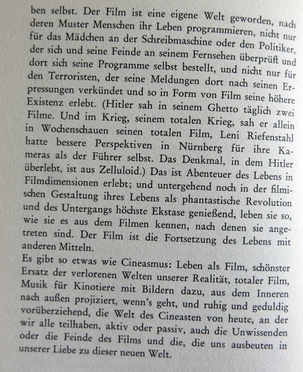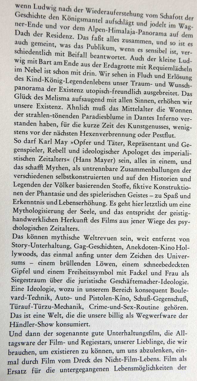 Neben dem Text zu den Filmen bis dahin, anlässlich der Premiere zu den Winifred Wagner Bekenntnissen am Ende einer ersten Retrospektive und das in Paris damals. in der deutschen Ausgabe(S.s Filmbuch1976) das Unheil, das die Deutschen damals befallen hatte, in Zeitungen deutlich. Auch dort in Beispielen abgedruckt. Es entspricht dem, was heute hier an den Orten der Geburt selbst nun zu tragen ist. Wieviel Rosen braucht der Mensch das auszuwiegen.