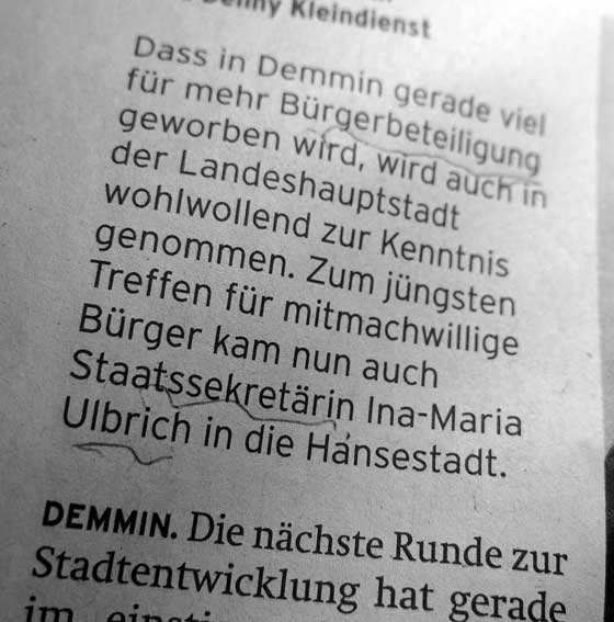 Der Aufruf der AfD für die Zukunft Demmins steht g im Raum. In derselben Zeitung. 2 Wochen zuvor.