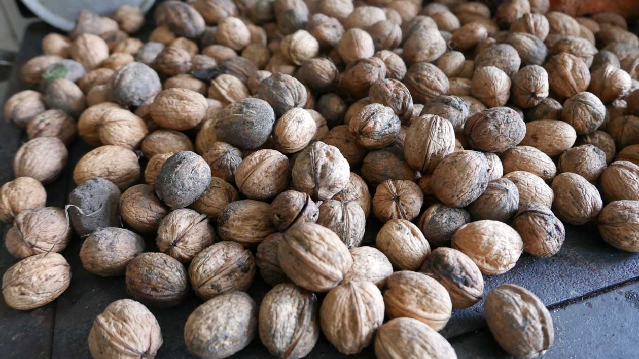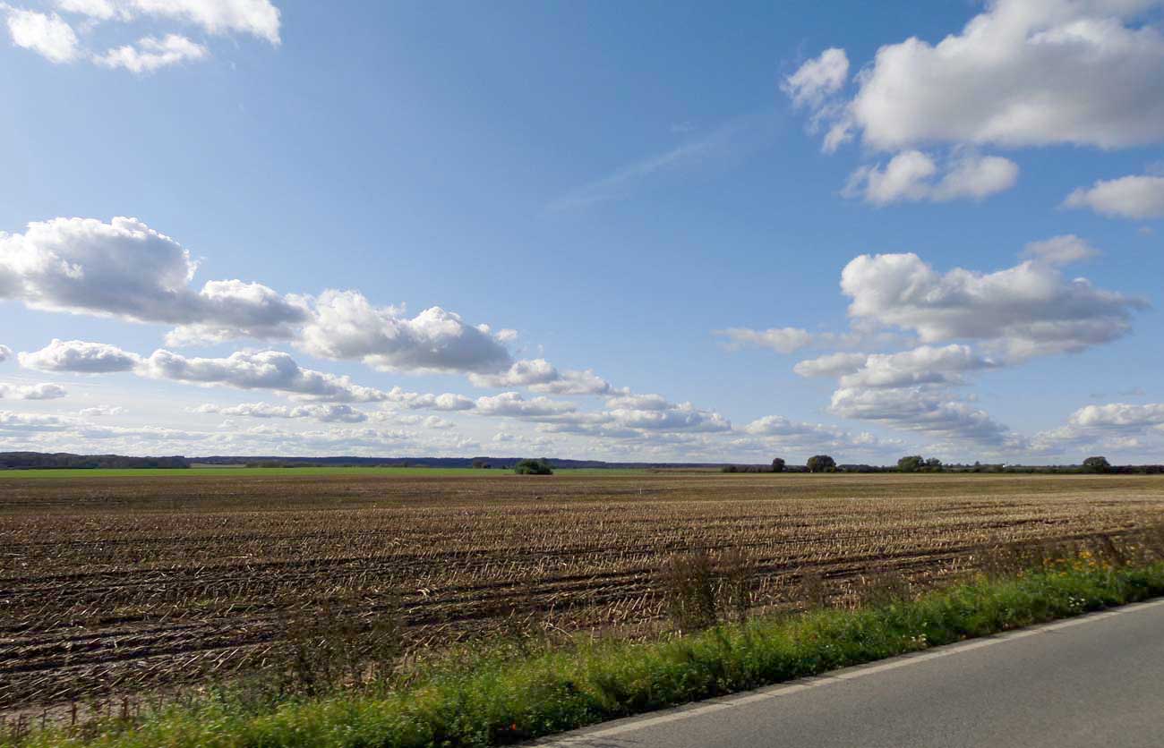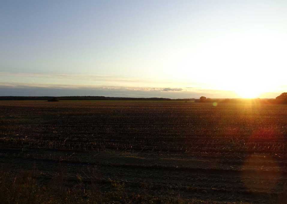 Die Felder nach der Ernte hier noch ungepflügt. Dem Boden und en Tieren günstig-