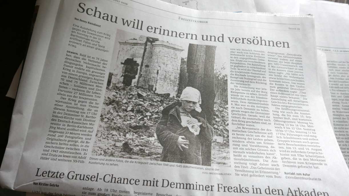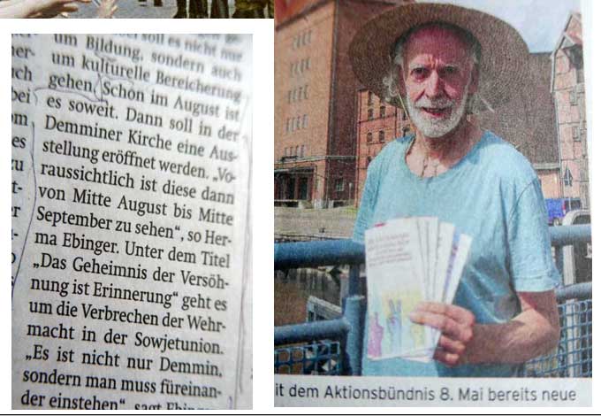 Es geht um die Verbrechen der Wehrmacht. D. ist die Stadt der über tausend Selbstmorde 45. Als die Russen kamen. Und um die Befreiungs-Feiern zum 8. Mai eben dort. Wenn die Luftballone steigen. Auf Anfrage