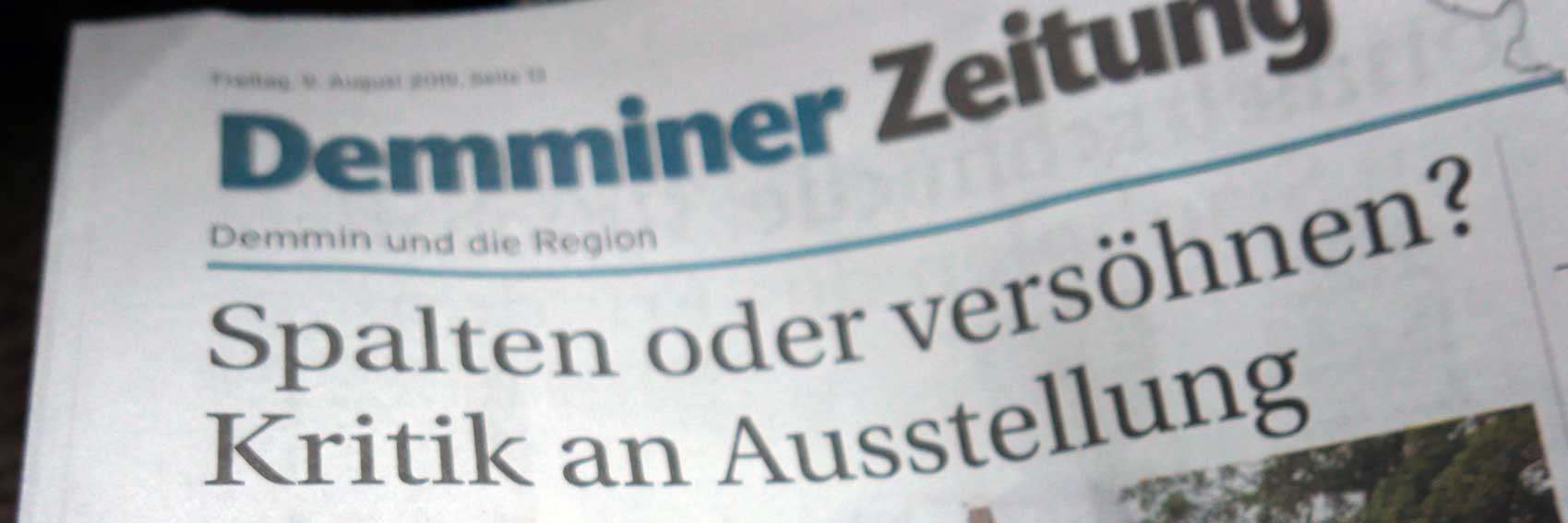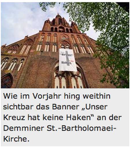 Auf Veranlassung von Pastor Wolkenhauer seit dem Jahr des Requiems in Demmin nicht mehr aufgehängt nach der gemeinsamen Erkenntnis, das stehe einer erwünschten Versöhnung im Wege.