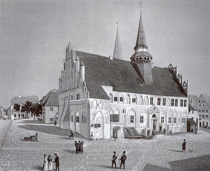 Neben anderen Suchaufgaben erschien dies Bild vom alten Rathaus in Anklam. aus gotischer Zeit, das sie abrissen damals um Neuem Platz zu machen. Am Rande. Etwas später stand wie die Ratsherren erschlagen wurden, leider nicht deswegen.