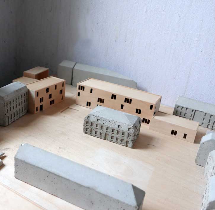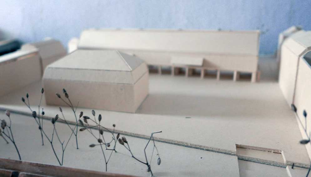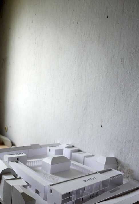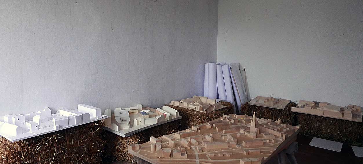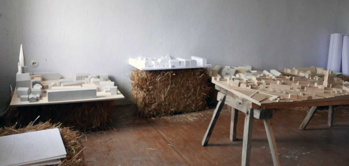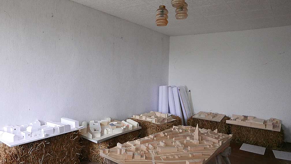 Diese für Demmin entworfenen Modelle werden nun in dem alten Bauernhaus von Nossendorf einquartiert. Die Handschrift des Architekturbüros Chipperfield in Berlin und seiner Studenten in Stuttgart werden nun also in diesem alten noch DDR-geprägten Gehäuses des Landes einquartiert. Und passen eigentölich gar nicht schlecht dahin.