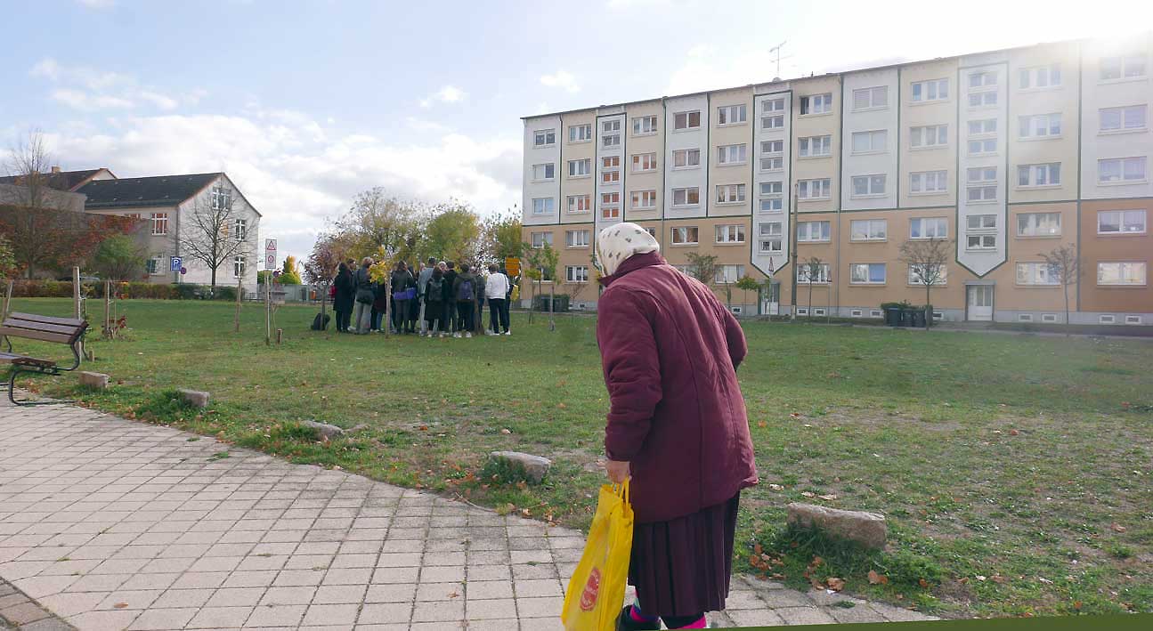 das erste was geschah: ein Weg aus Bäumen schaffen auf das Rathaus zu, die Leere zu markieren