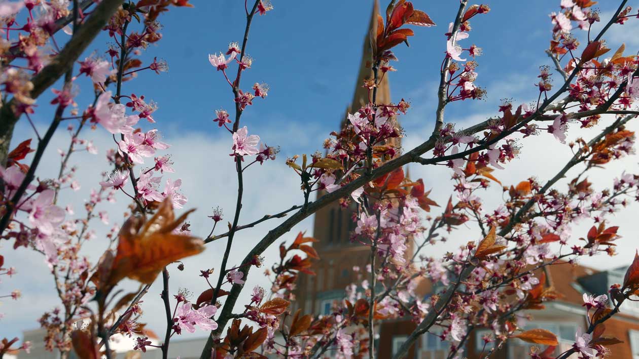 Diese Kirche überstand den grossen Brand vor 75 Jahren und das waren keine Bomben. Heute wieder mit der Orgel dass sie klingt. Weithin und eben jetzt. Dass jeder Gebrauch macht von ihr auf seine Weise, und manchmal auch listig für alle . Dass das ganze Gebäude klingt mitten in der leeren Stadt.