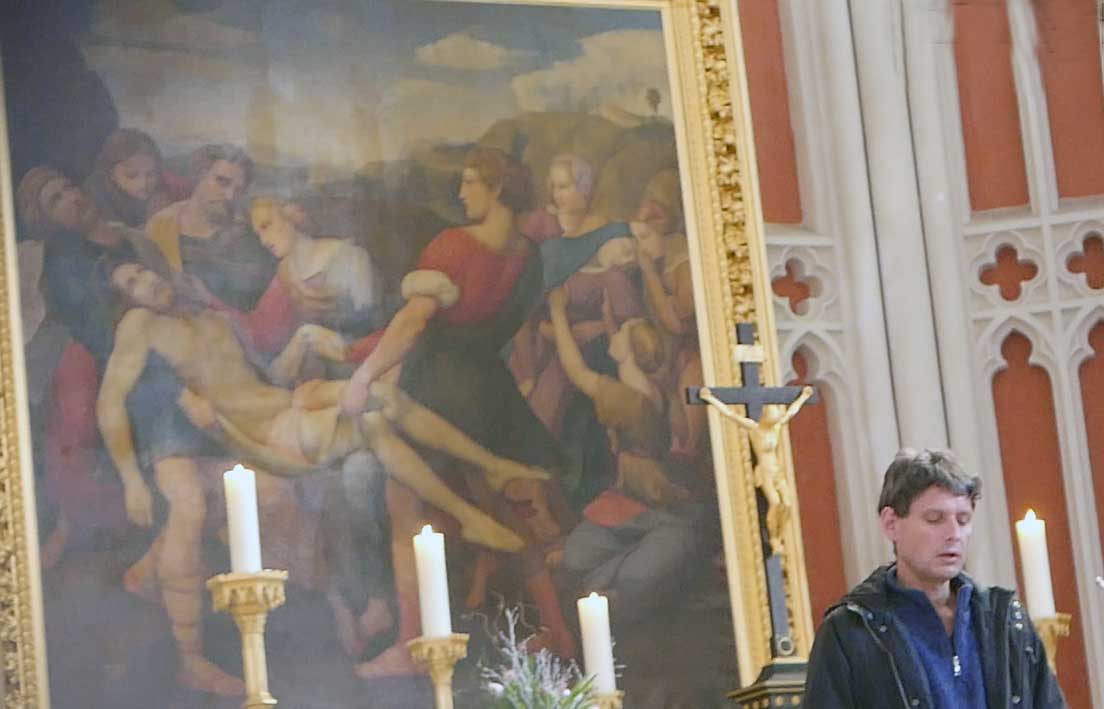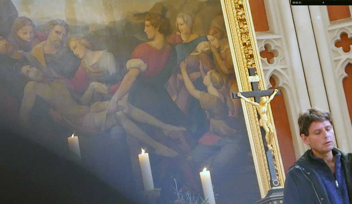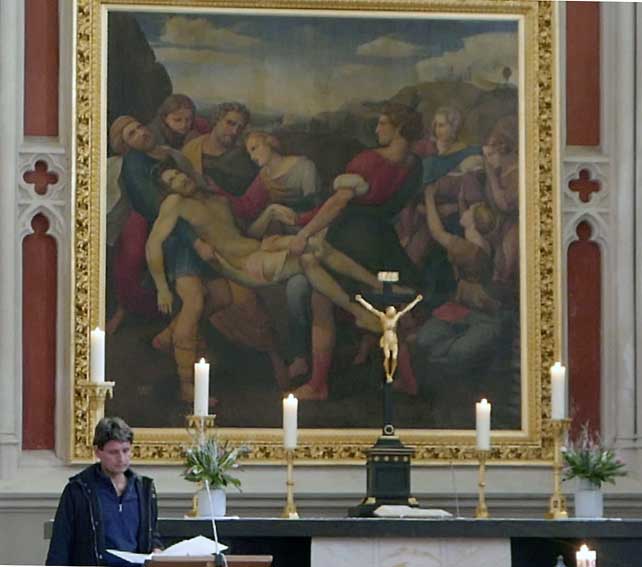 Nun ist die Kirche offen für eine Stunde und ihr Kantor als Überraschungsgast selbst liest aus Lukas 22 und sagt seine Worte dazu