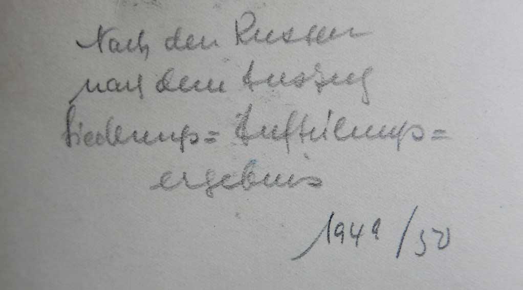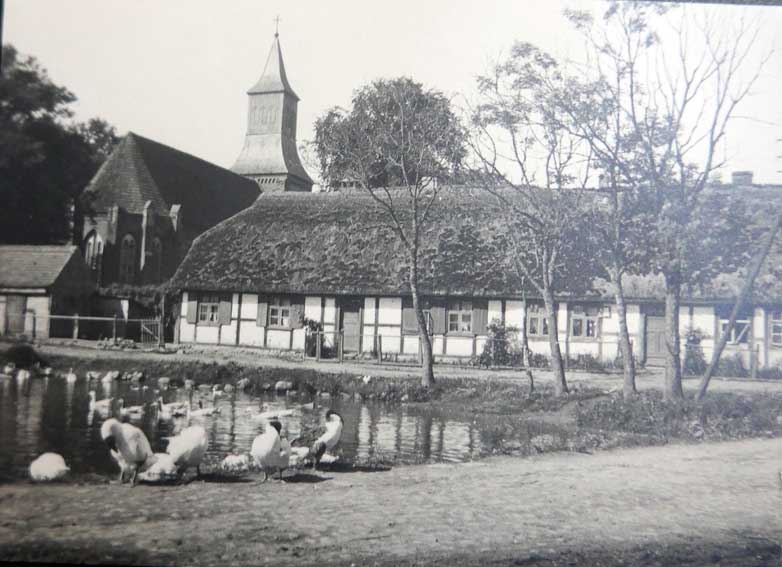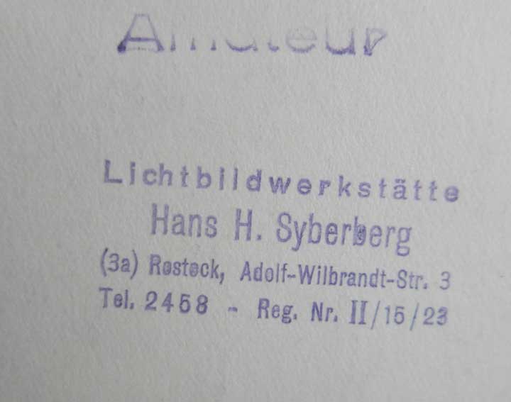 Der Vater beschrieb das hinten so. Daneben der Stempel seines neuen Fotoaleliers in Rostock. Von da Fotografie-Film, usw.Das Bild war zugeschickt worden von Hannchen Normann, Tochter des Lehrers und Organisten Malug und Mutter von Olaf, der die Chronik des Dorfes erbte.