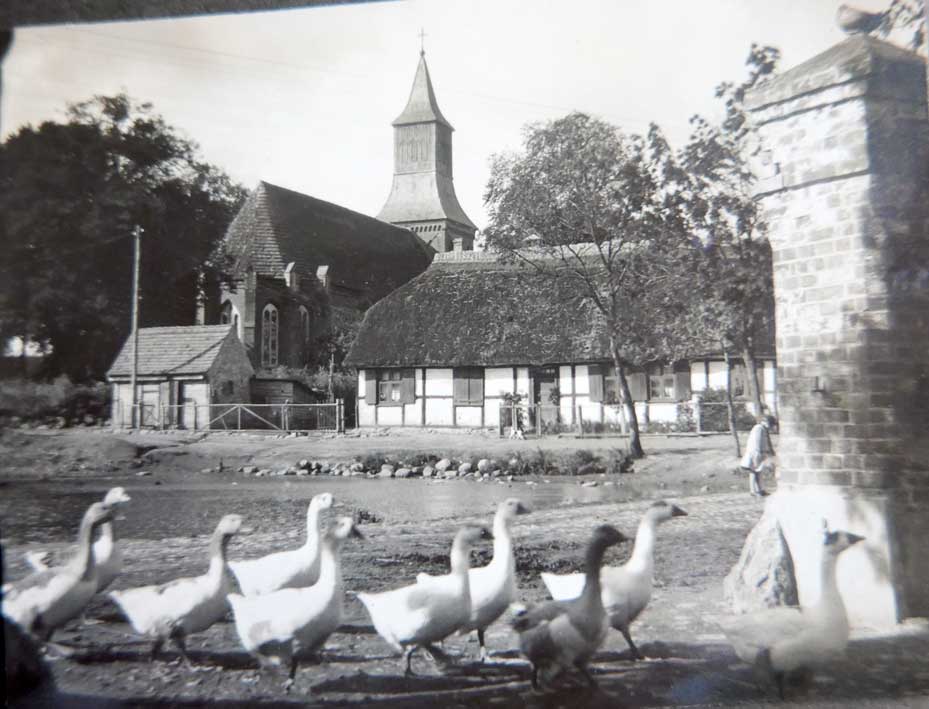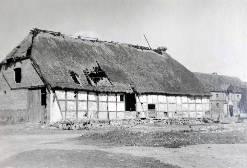 um die Scheune kümmerte sich danach niemand . Dach dann eingefallen, die Mauern aus Fachwerk und Feldsteinen zusammengefallen, eingerissen, hochgemauert als Halle der LPG erhalten.