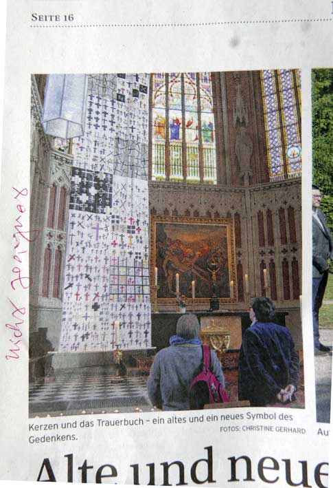der Menschen, die diese Kreuze des Verschweigens ihrer Namen zu nähen verführt wurden.