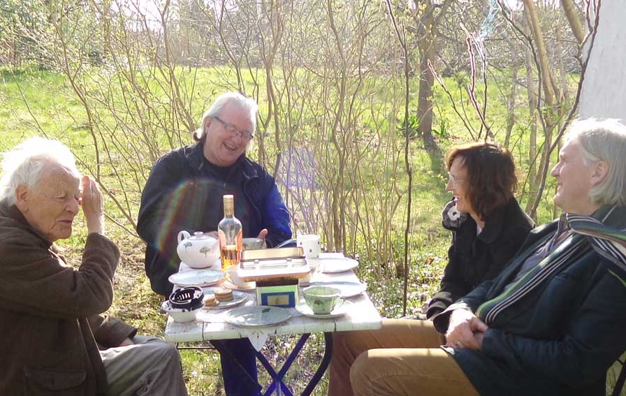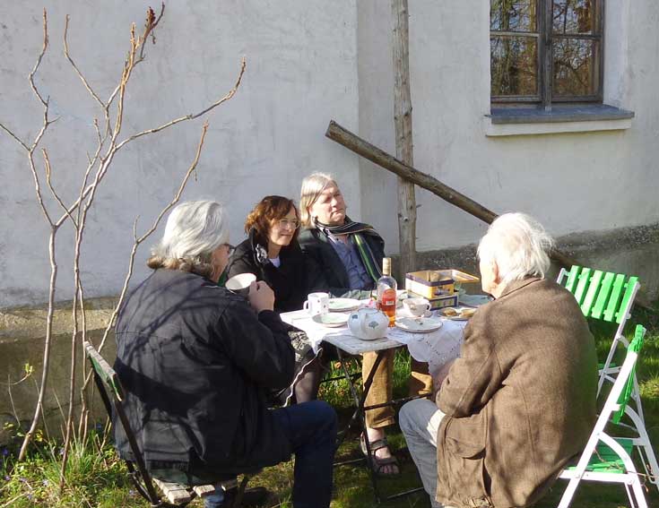 Dann kam auch die Burgi, Mutter Esch aus Demmin, bringt für jeden was, wie neulich den Kuchen für Dacharbeiter. Auf den Twitter-Aufnahmen Dialoge dazu.