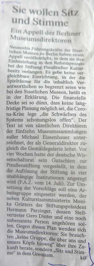 Im Radio, dass sie reden und abstimmen zur Preussenstiftung.