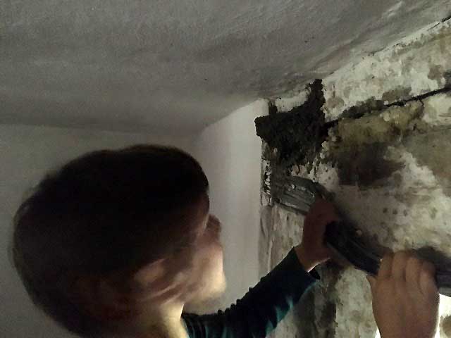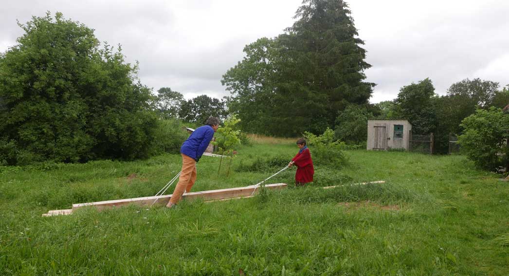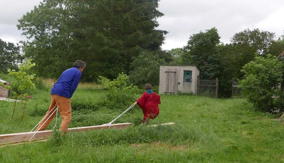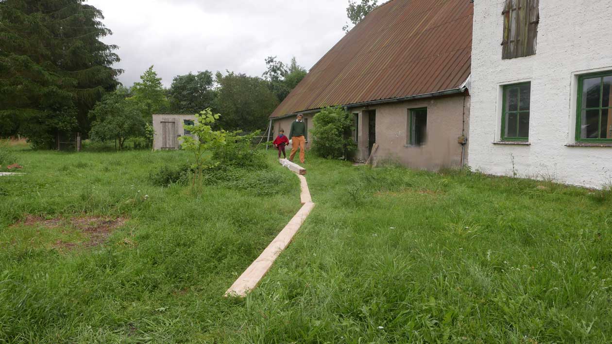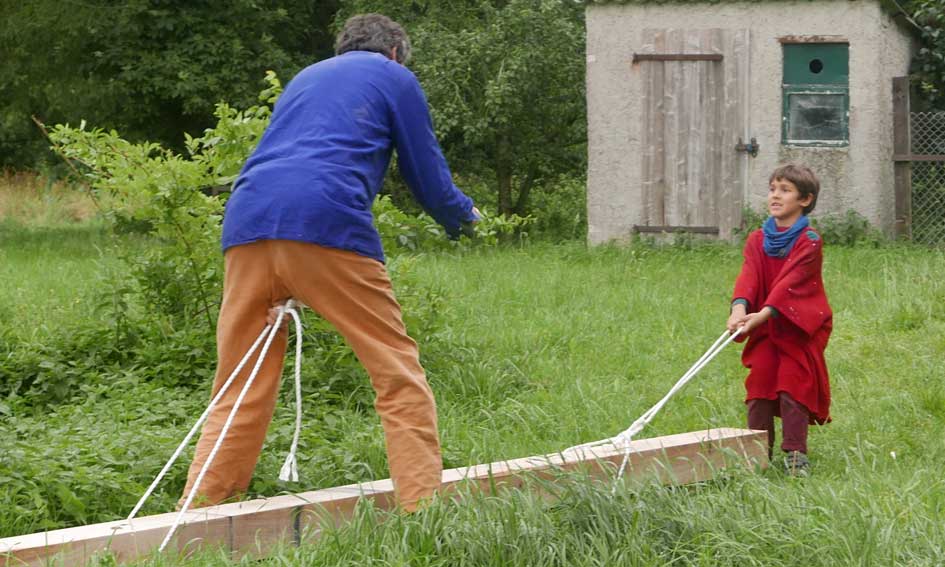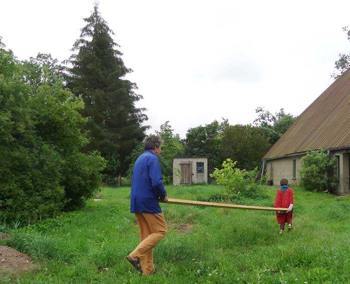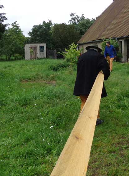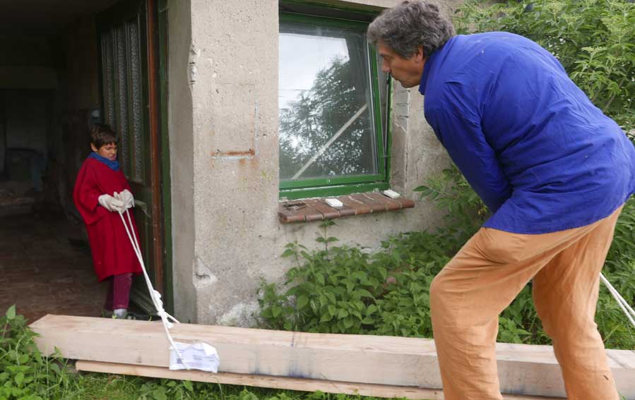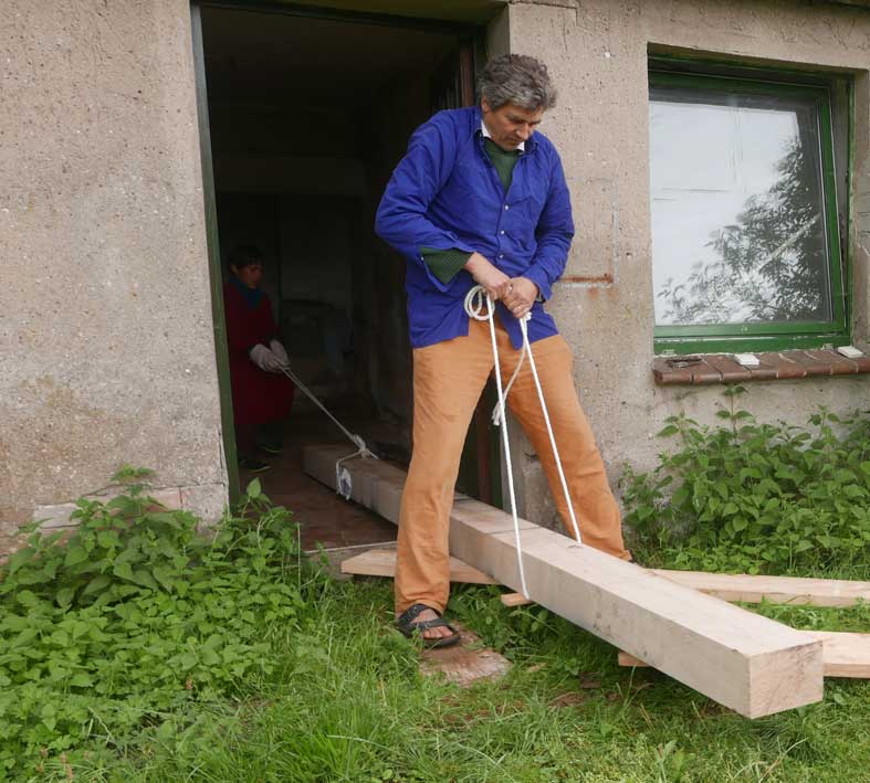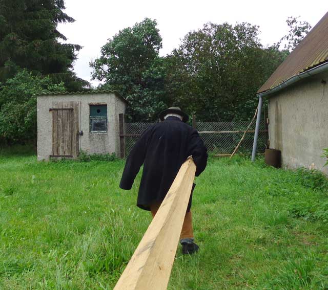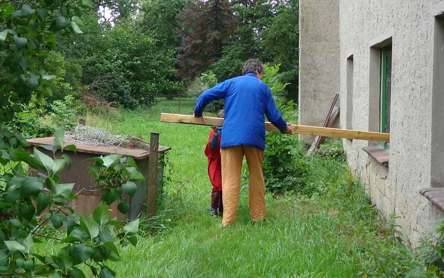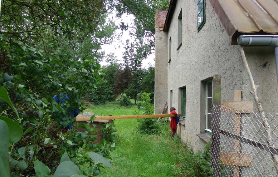 Der Balken muss hinein, die alten morschen raus und auf neuem Fundament alles stehen lassen