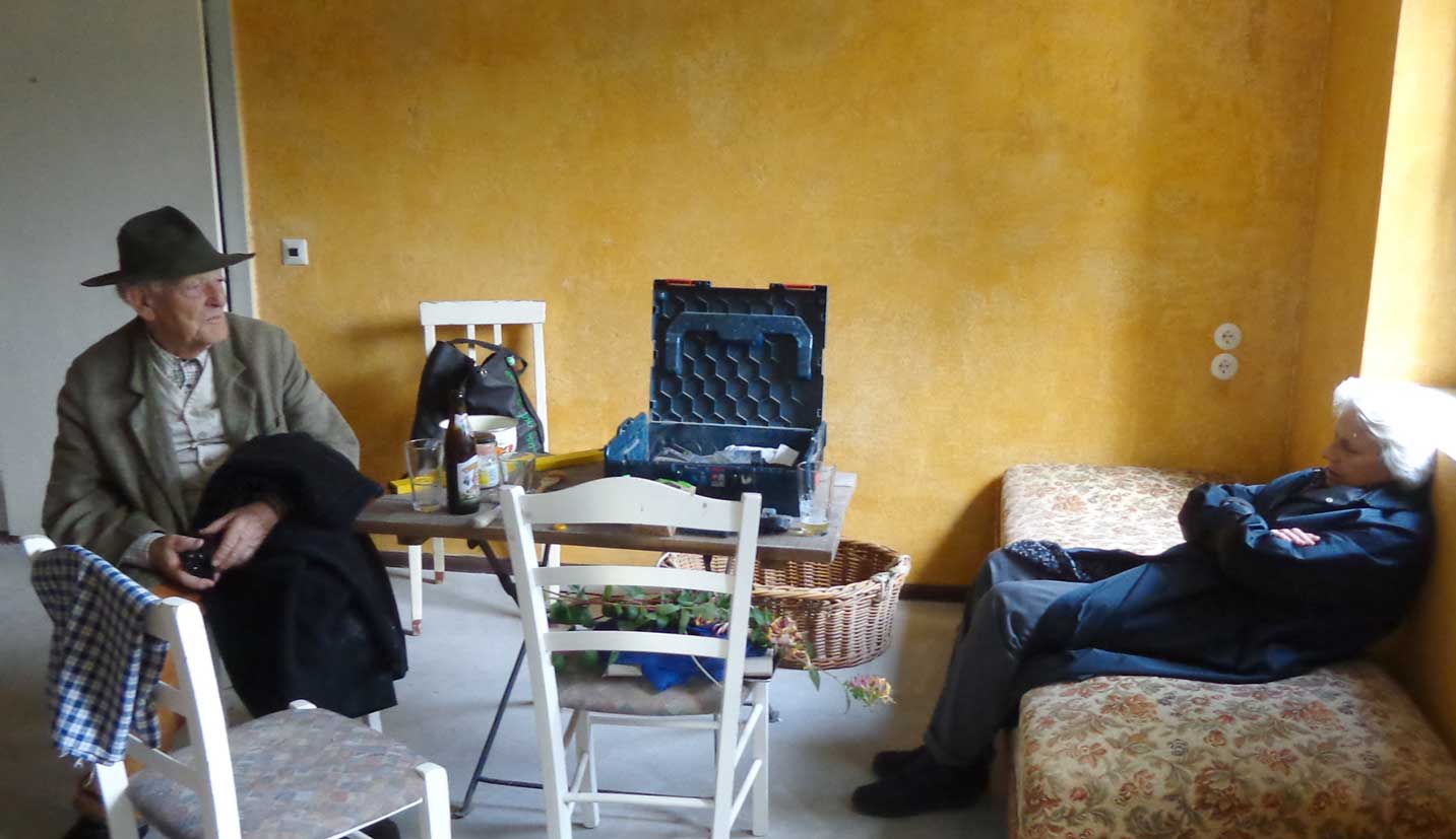 dort nun wo in ersten Jahren der Küche von Anneliese und Alfred mittags gesessen am Ofen und gegessen nun alles zurückgefürht in die alte StubenKüche