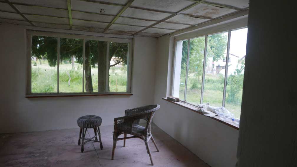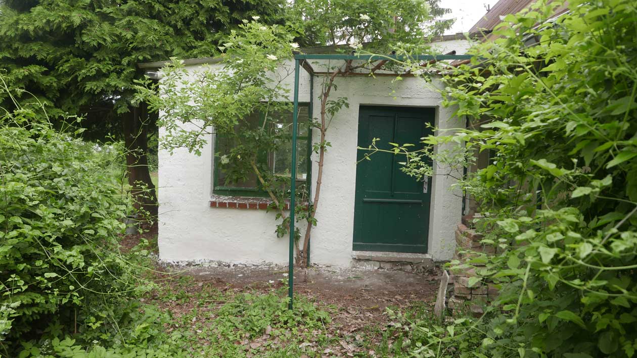 DDR Anbau nach vorne nochmal erhalten hell mit Asbestdach nun in Weiss