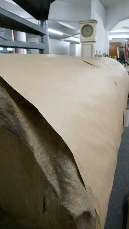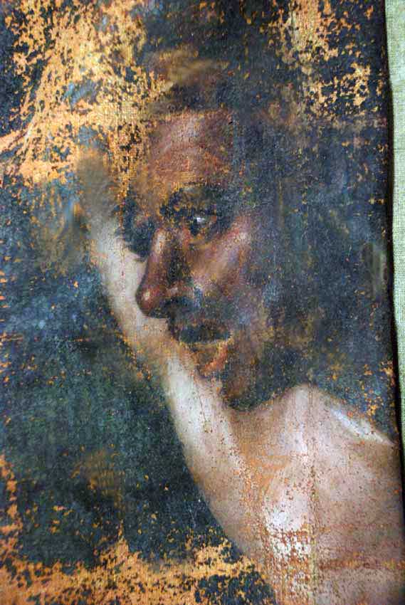 gefunden damals 2009 im Museums-Archiv Demmin auf Nachfrage was das denn sei. Es war die Kreuzigung seit 1945 nicht mehr gezeigt und zusammengefaltet, neu geglättet, ohne Wissen woher. Und wie dorthin gekommen.