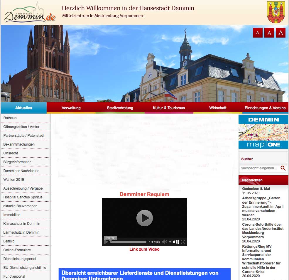 Das Requiem nun doch für ihre Toten sollte den Demminer wert sein zu erfahren, was es kosten würde den Markt wieder aufzubauen, das Zen trum der Stadt, und wie das aussehen könnte. Bis Ende Mai soll diese Untersuchung, Studie, abgegeben werden. Das wäre unsere Intentiuon. Danach dann der Wiederaufbau 75 Jahre danach. Wozu sonst die Reden, Ermahnugen und Feiern der letzten Tage des Gedanken ohnen Taten?