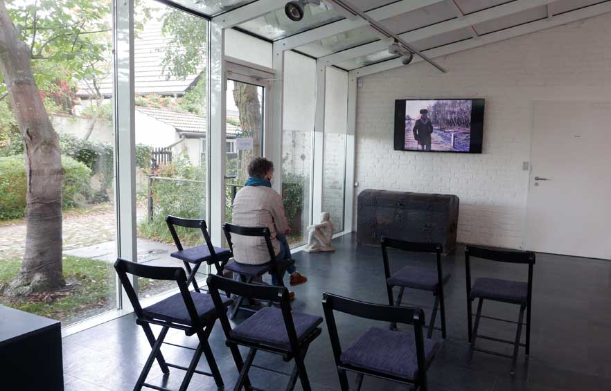 Der Platz des Wohnens und des Ateliers jetzt ergänzt für Besucher, seine Bilder zu sehen.