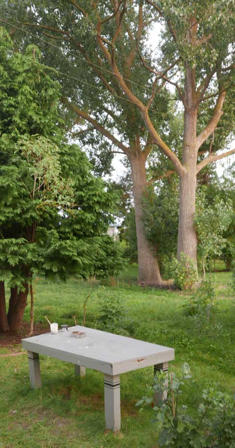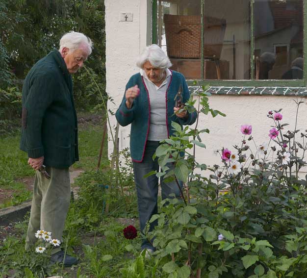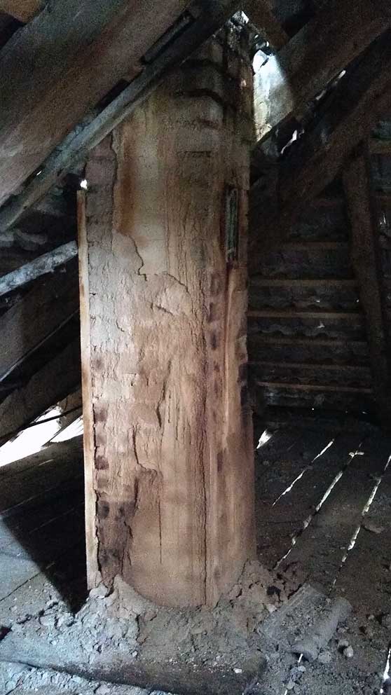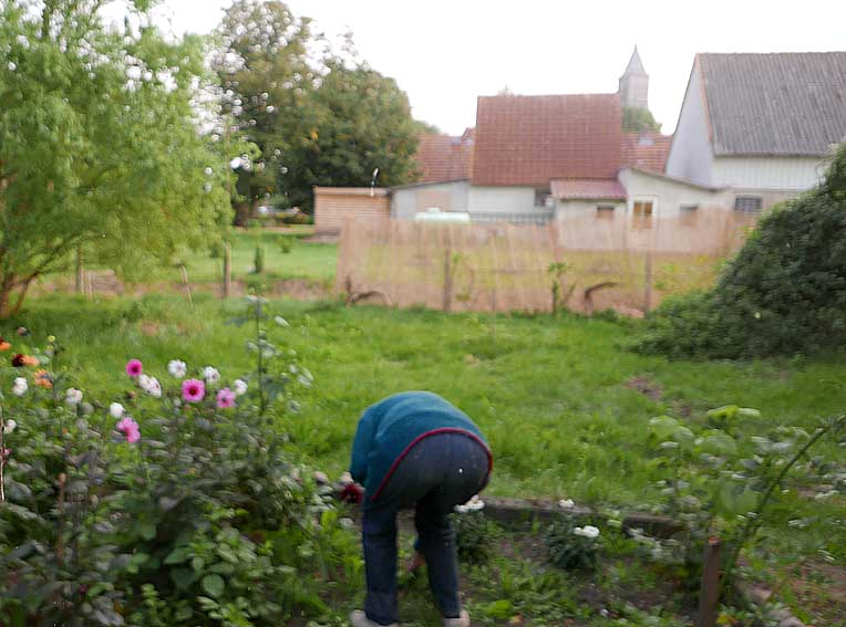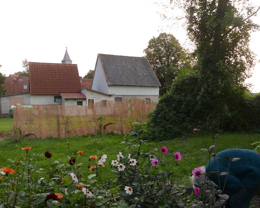 von oben leckt es herab, an den undichten Stellen, von innen fest der Kern, brüchig alles, wenn wir nicht aufpassen, das was stehen bleibt wenn es fällt.