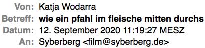 und kam als 16jährige dazu, wie drei erwachsene kerle an nem stall ne katze an die wand genagelt, is sie vom rad, den spaten gegriffen, der wo stand, und nacheinander alle drei damit k.o. gedroschen, krankenhausreif, die katze abgemacht, die nägel aus den pfoten zu ziehn, husch, war sie weg, muß sie sich gesund lecken, vor gericht, der anwalt hat sie frei gekriegt, notwehr, nicht zu entschuldigen die tat, die mußten zahlen, ob das denn wirkt.