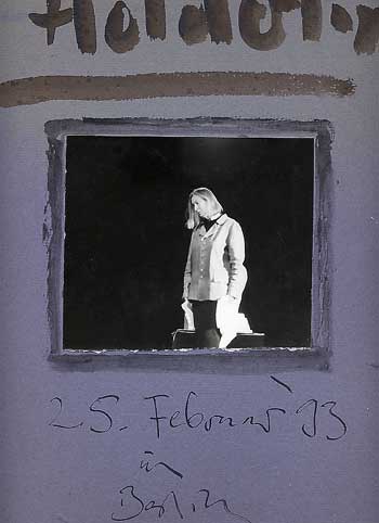 Fangen wir mit dem Letzten an, Hölderlin letzte Gesänge.Ohne Film und in 3 Tagen entstanden, Bis Moskau und Madird gekommen Mit Schubert und Kurtag. Zuletzt in Hanover unter johlendem Geschrei der Anitfa-Leute hier.