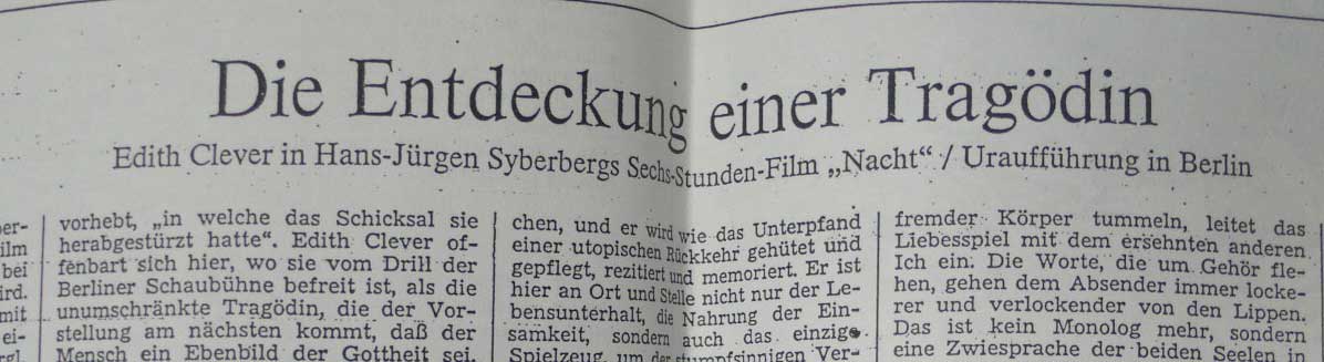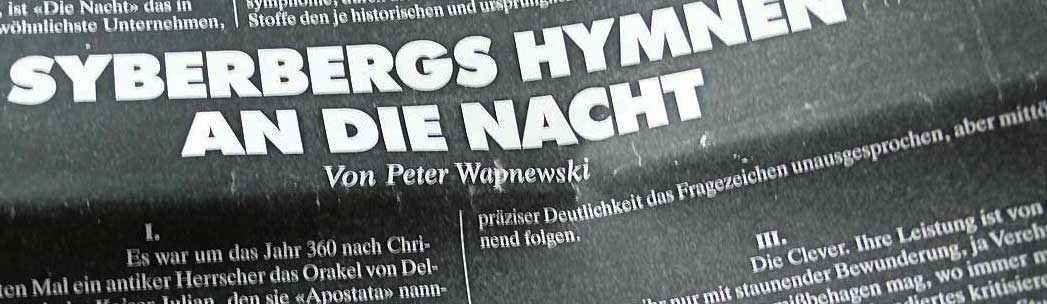 Angefangen hatte das mit der Kundry im Parsifal zur Musik von RW ohne eigene Stimme, von der SZ jetzt den Monologen zugerechnet...