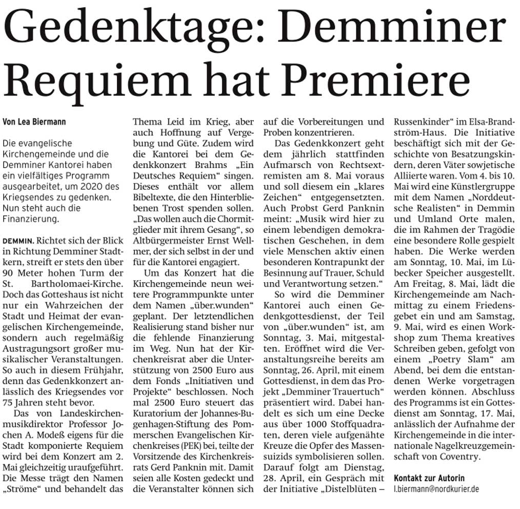 Kein Requiem kann als "klares Zeichen"gegen Rechtsextremisten am 8. Mai der Okkupation gut sein, wenn es den Toten gewidmet sein soll mit den Worten der Bibel eines grimmigrn Gottes. Und dann allen.
