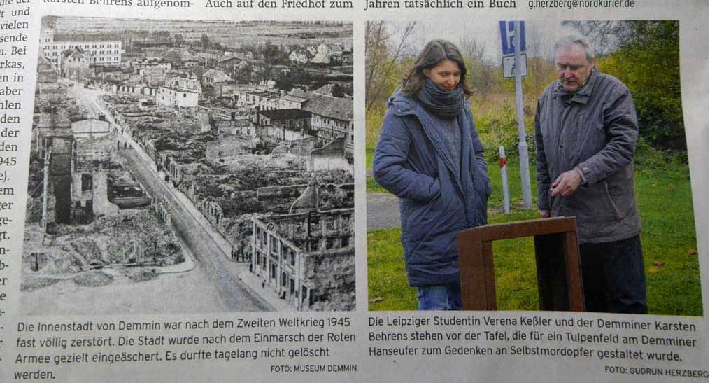 Der neue Platz für die Toten von 45. Am Ufer der Peene, wo sie ins Wasser gingen, zu hunderten.