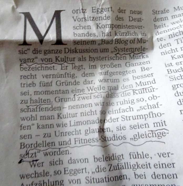 Man beachte die Kosten und die Verluste an Worten und Tönen(Musik) aber auch der Räume.