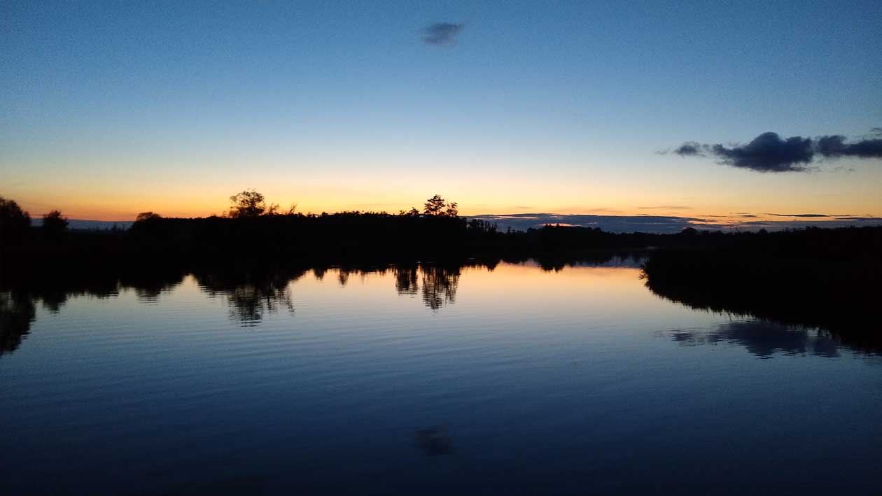 Und dann wieder am Abend vom Boot die Peene Richtung Ostsee
