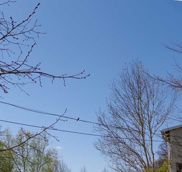 Sonst immer den blühenden Schleedorn versäumt, wenn in München Ostern. Diesmal sehen wir ihn. Links und rechts der Strassen.