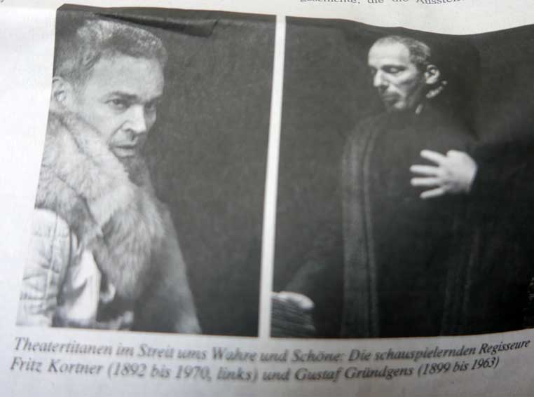 Aber noch zum Theater kam, ausser der Schule bei Brecht und Kortner, die Herkunft vom Film, besonderer Art, und wie die Bühneregie Hollywood dann im Stil des Boulevard-Theaters, gewissen Möglichkeiten der Kombination jetzt von Licht und Menschentraining im Verstehen von Schnitten auch im Theaters erlaubten, jenseits von Film auf der Bühne als Zitat. Aber das ist ein anderes Feld. Theater ist schon lange nicht mehr einzuteilen in wieviel Werk-Treue da geschieht aber was aufregt, wenn die Menschen zusammenkommen vor der Bühne stumm oder mit Worten oder der Dinge und Darsteller des Könnens was sie wollen.