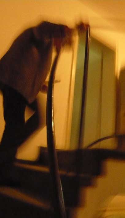 um das Nötigste, im Keller zuerst, zu retten.