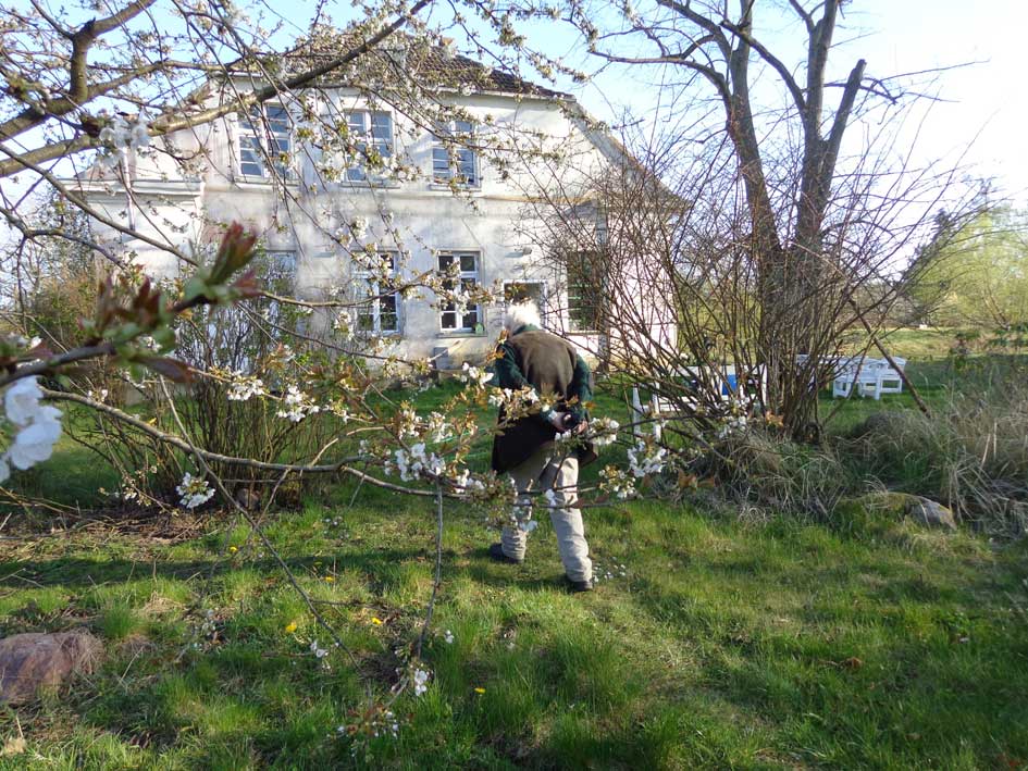 Immer noch bewegen wir und zwar auf eigenem Grund aber in und mit untersagten Bäumen über einem Rohr das Die DDR baute und adas nun Mass ist aller Dinge, diese Bäume zu entfernen. Und das in einer Zeit, in der Welt gerade untergeht, weil sie nicht nur die Bäume verachtet und die Vögel tötet, sondern am Ende sich selbst. Bei täglich einlaufenden Briefen die zu verfolgen, die hier versuchen, was noch zu retten ist.