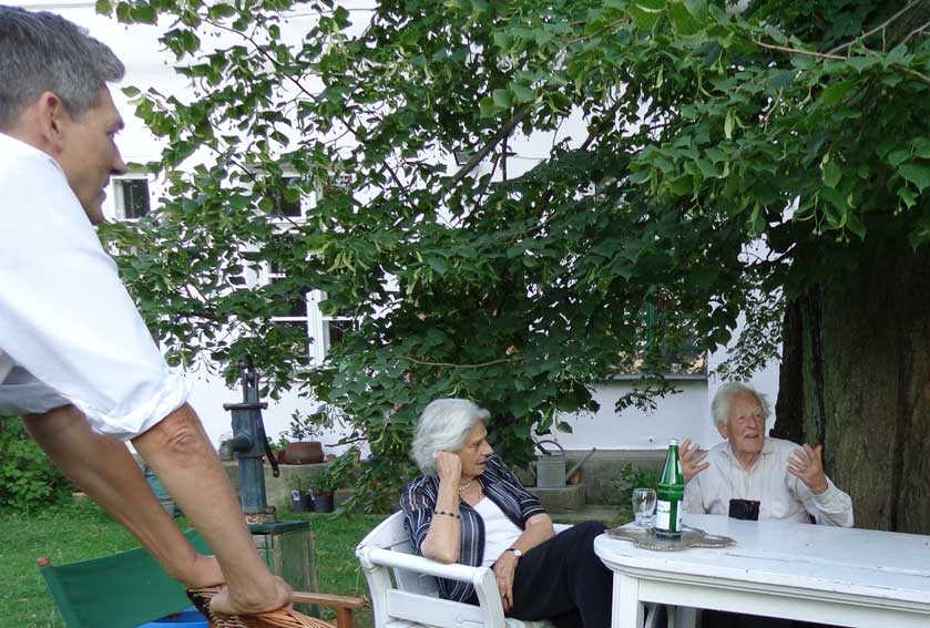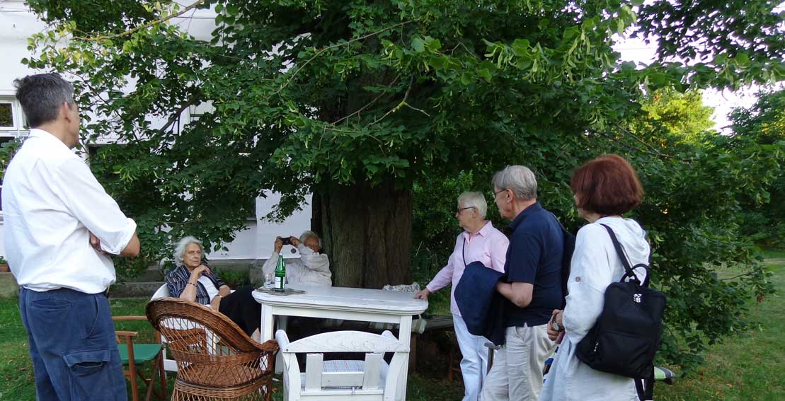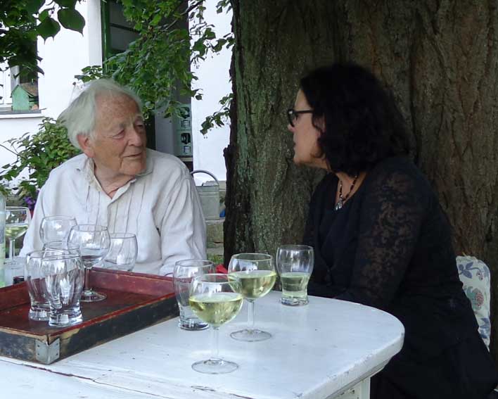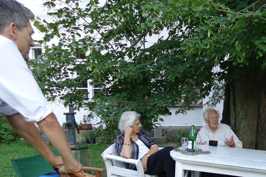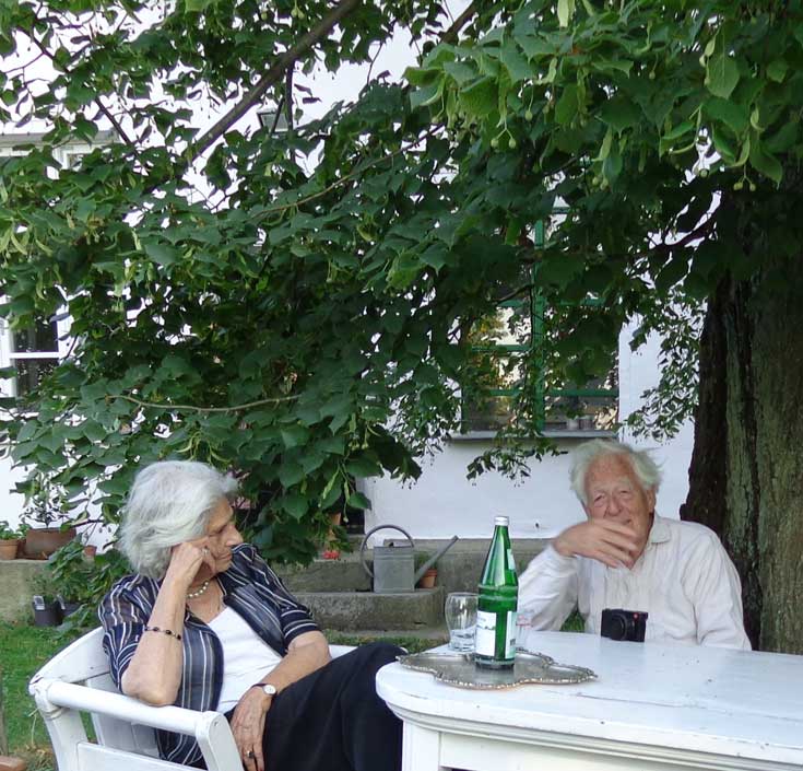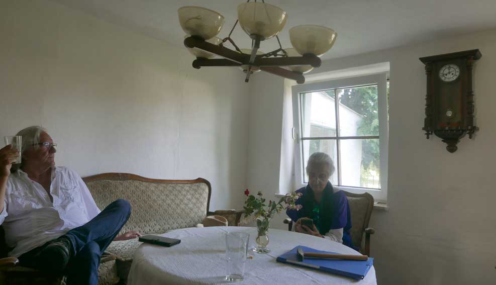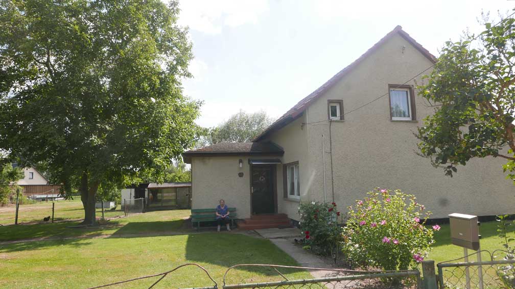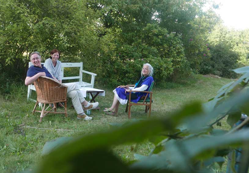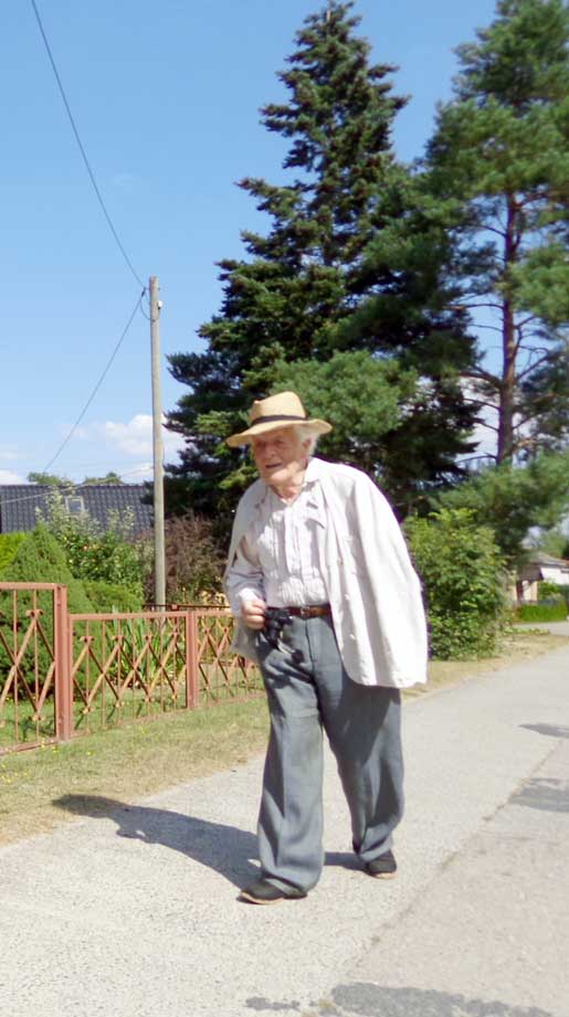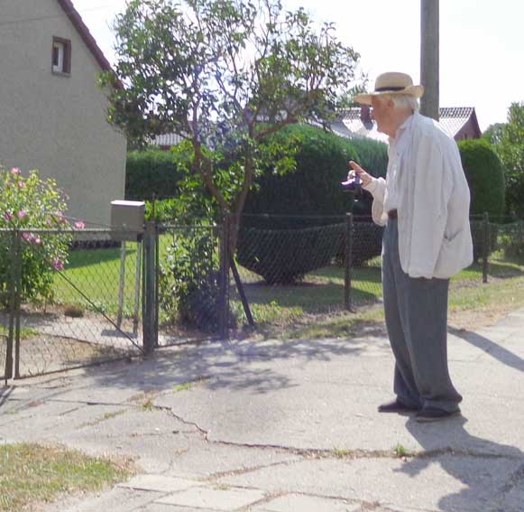 auch Lieselotte sitzt am Randes der Strasse vor dem Haus - die frreundliche Begegnung- vorbei ziehen sehen 80 Jahre nun
