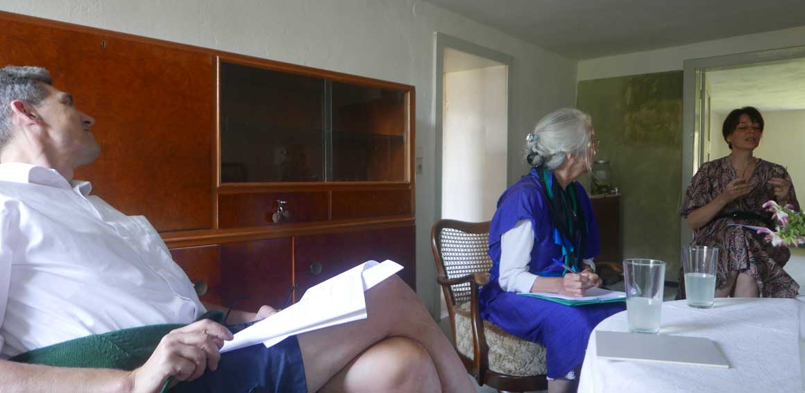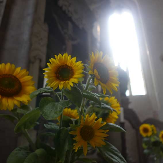 Feraogosto sagen die Italiener zur Mitte des August und feiern den Sommer. Die Schwalben im Nest der Diele oben sind geschlüpft. Eine zarte Feder der Schleiereule aus der Kirche darunter.