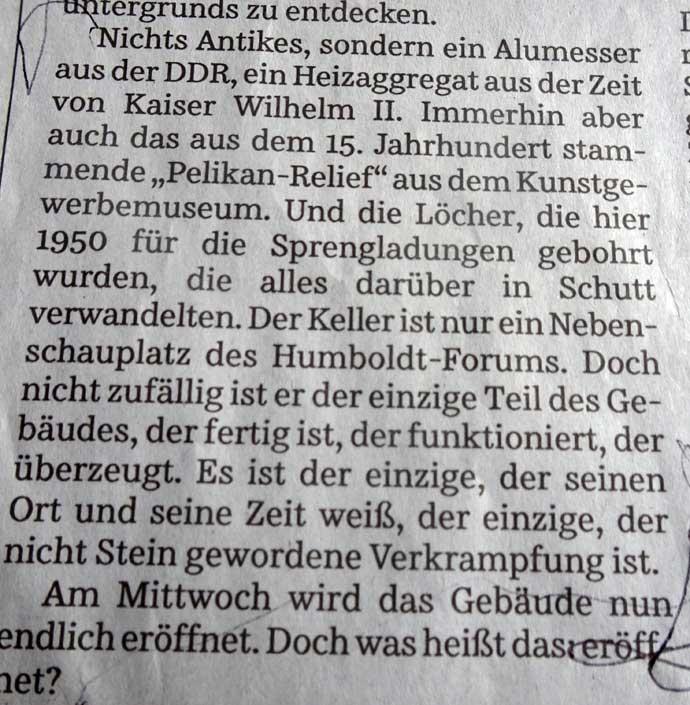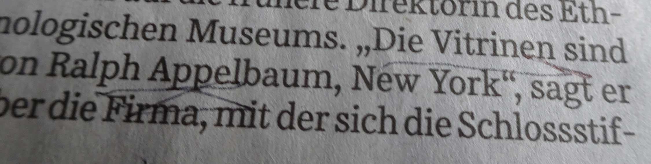 leer die Appelbaum'schen Vitrinen Abgehauen der Designer des Holocaustmuseums in Washington und hatten sichs so schon ausgedacht. Dass er das nun macht hier. Wenigstens im Inneren